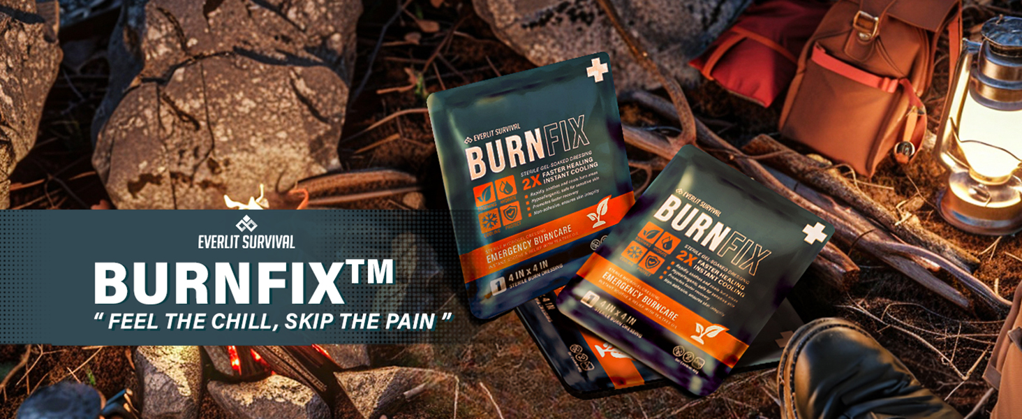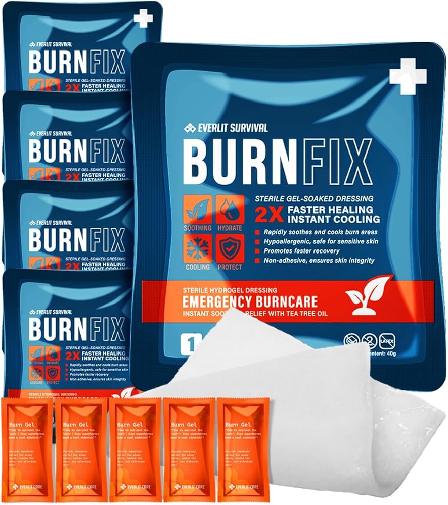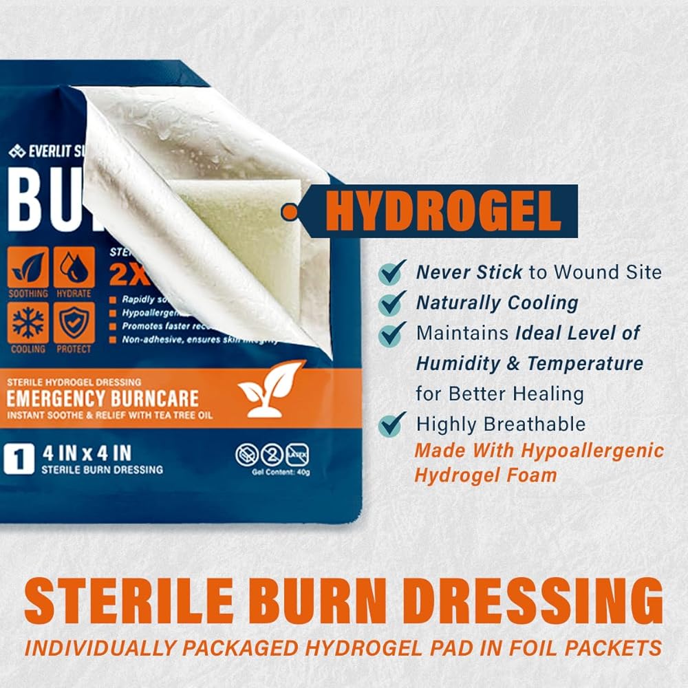 Everlit Survival Burn Dressing 4" x 4" | Sterile Gel-Soaked Non-Adherent Pad for Instant Cooling, Calming & Soothing | Fast-Healing First Aid Supply Compact Kit (Pack of 5)