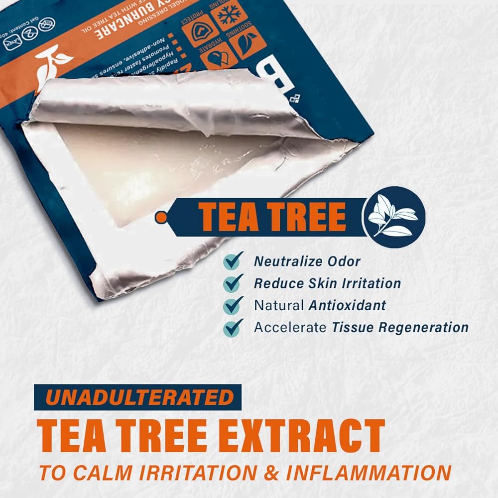 ✅UNADULTERATED TEA TREE: Infused with unadulterated, organic tea tree oil, Burnfix dressings offer natural anti-inflammatory benefits, making them ideal for burn treatment. Tea Tree oil is renowned for its ability to promote skin recovery and neutralize odors, providing a triple-action formula that enhances the healing process.