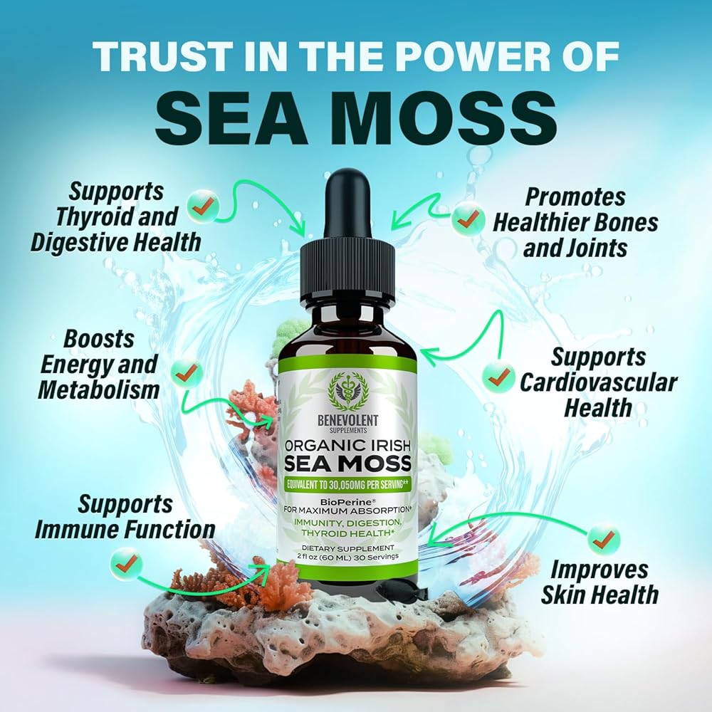 Multiple Benefits – Sea Moss have shown to have potent health properties. Our sea moss tincture is specifically designed for both men and women to support bodily functions and promote an active and healthy lifestyle. With a commitment to purity, our supplement provides clean support without any harsh additives, ensuring you receive the utmost care and nourishment.