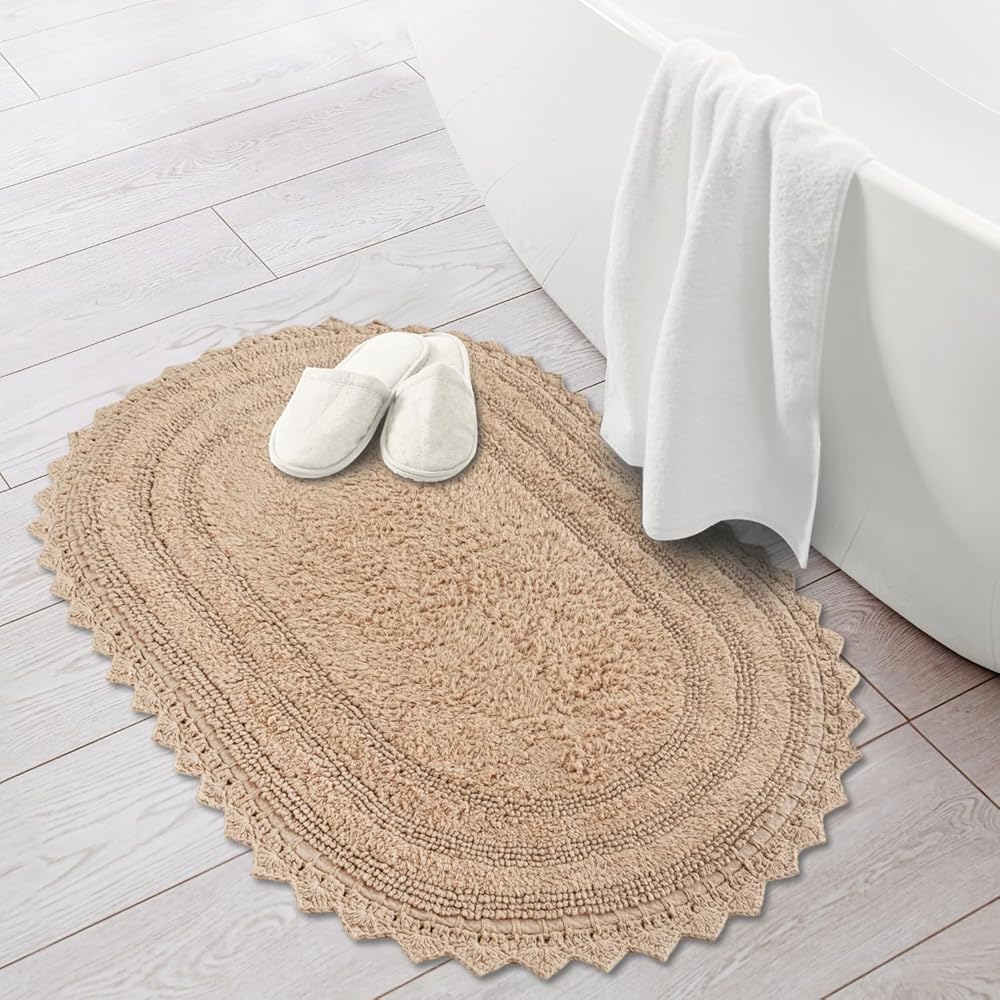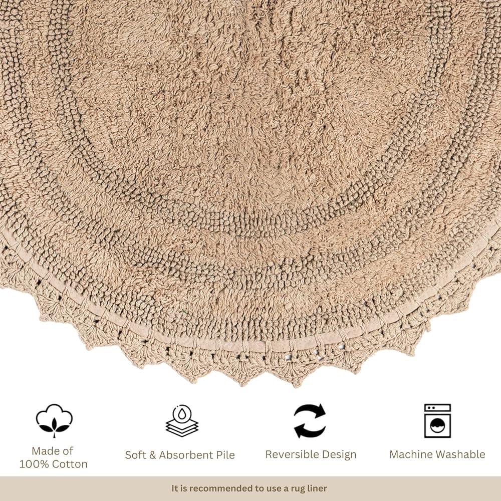 Crochet design : The crochet design of the rug gives it a unique and stylish look. The intricate design is handcrafted, adding a personal touch to your bathroom decor. The reversible design allows you to flip the rug over and use it on either side.