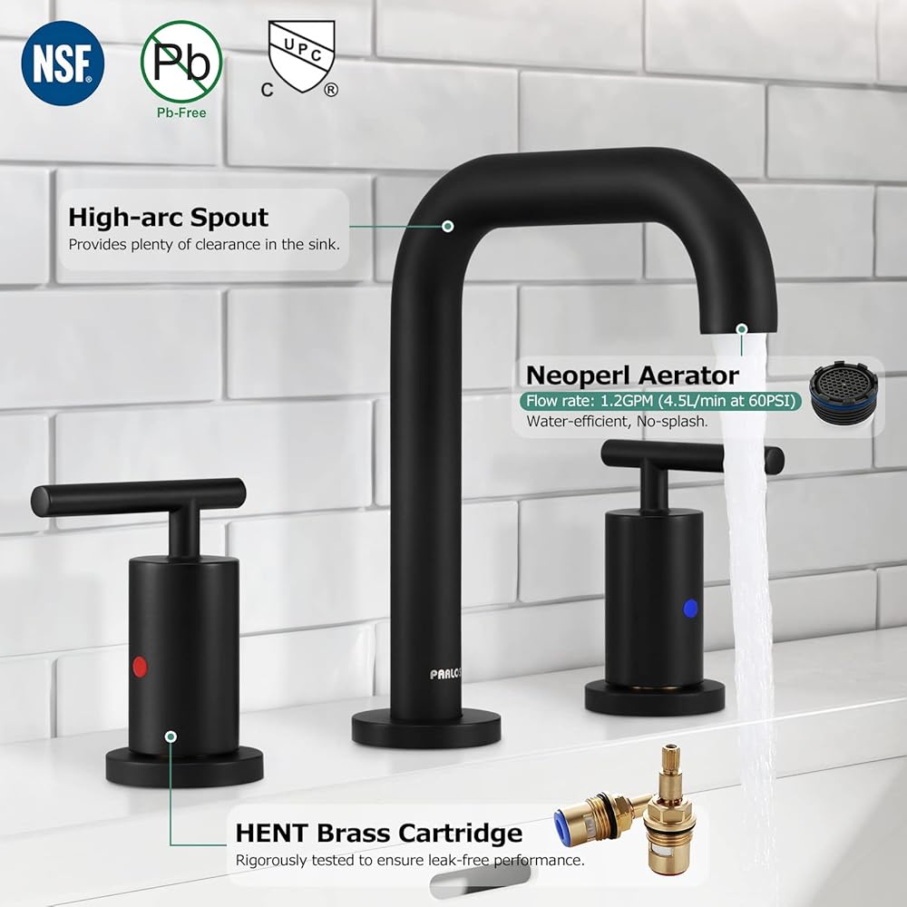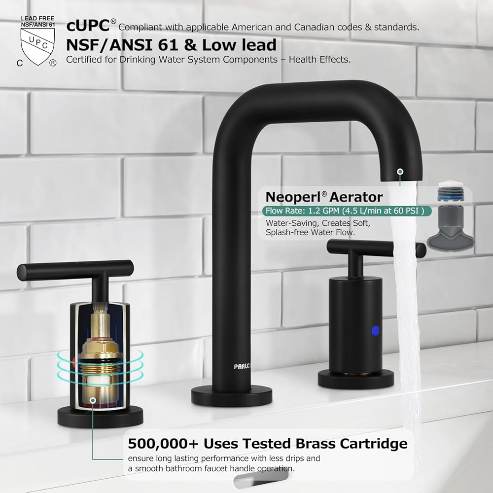 Certified to cUPC and NSF 61 - PARLOS bathroom sink faucet complies with drinking water safety standards.