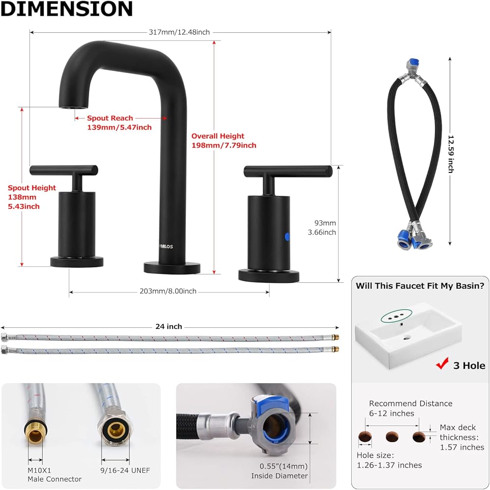 3 Holes deck mount compatible with widespread installations at any distance between 6 and 12 inches. Hole size: 32-35mm/ 1.25-1.37 inch.