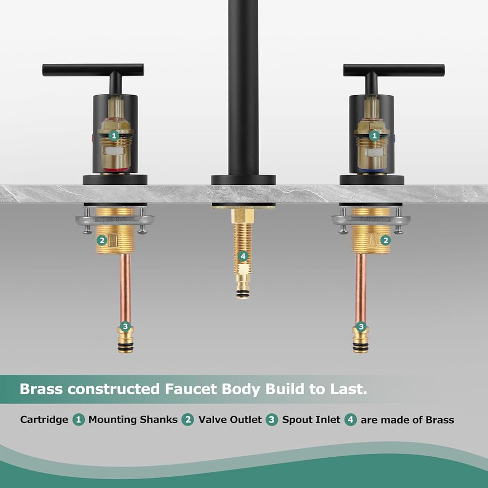 Design to Easy Installation for Saving Plumbing Installation Fee - This 3-Piece bathroom sink faucet with rough-in valve, no more valve required to complete installation. Just join three separated pieces of faucet with "Y" shaped quick connect mixer hose and cUPC certified water supply lines.