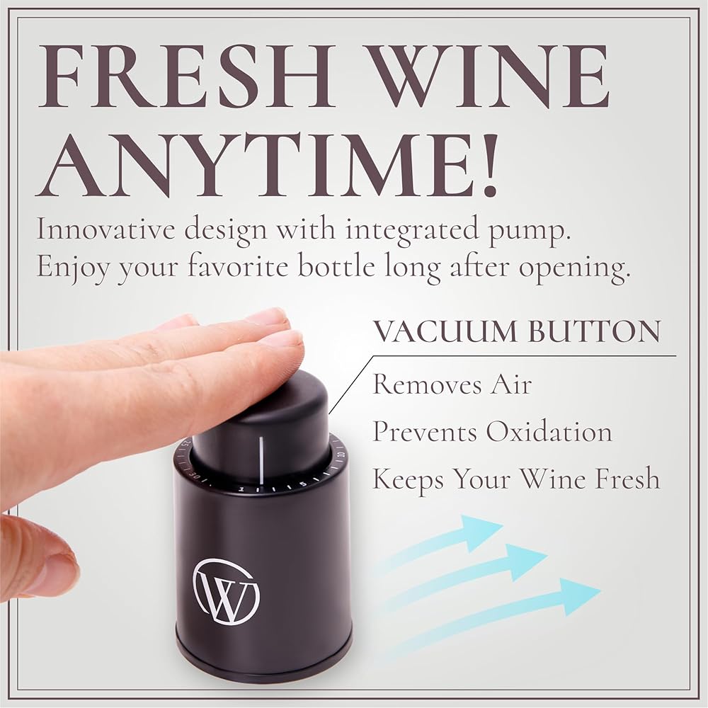 Enjoy the full potential of your wine collection with our Vacuum Wine Stoppers - because your wine deserves nothing less than perfection.