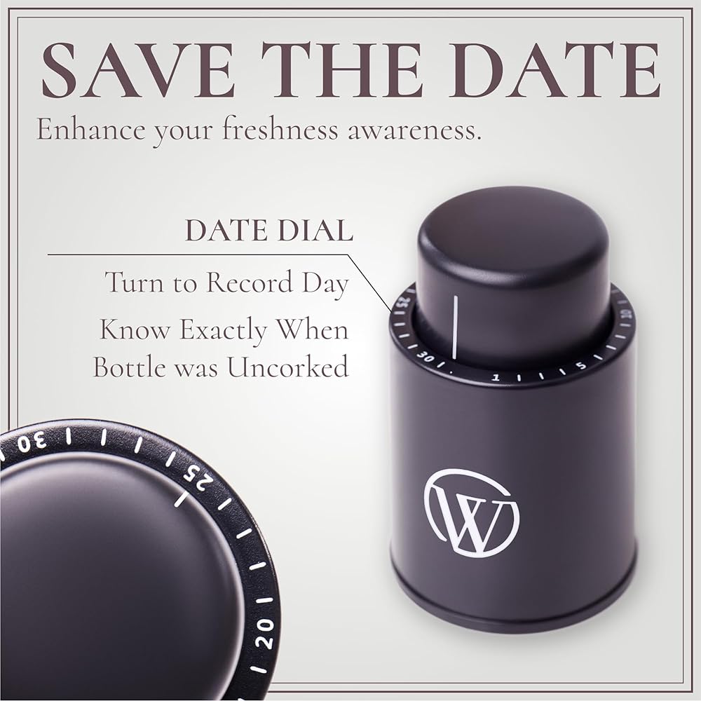 Never miss a beat with the integrated date reminder on the dial. Keep track of when you opened the bottle, ensuring you enjoy your wine at its peak freshness. Crafted from premium materials, including professional-grade components and food-grade silicone, our wine vacuum stoppers are not only effective but also safe and compatible with all types of wine bottles.