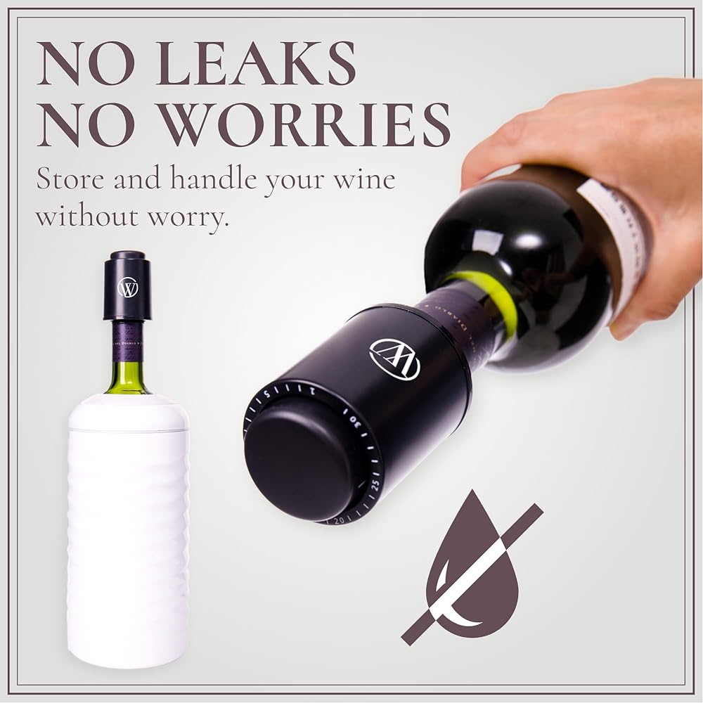 Our innovative wine stoppers not only seal the bottle tightly but also feature an integrated vacuum pump. This removes residual air, preventing oxidation and extending the life of your wine. Say goodbye to the disappointment of stale or spoiled wine, and hello to the joy of a perfectly preserved vintage.