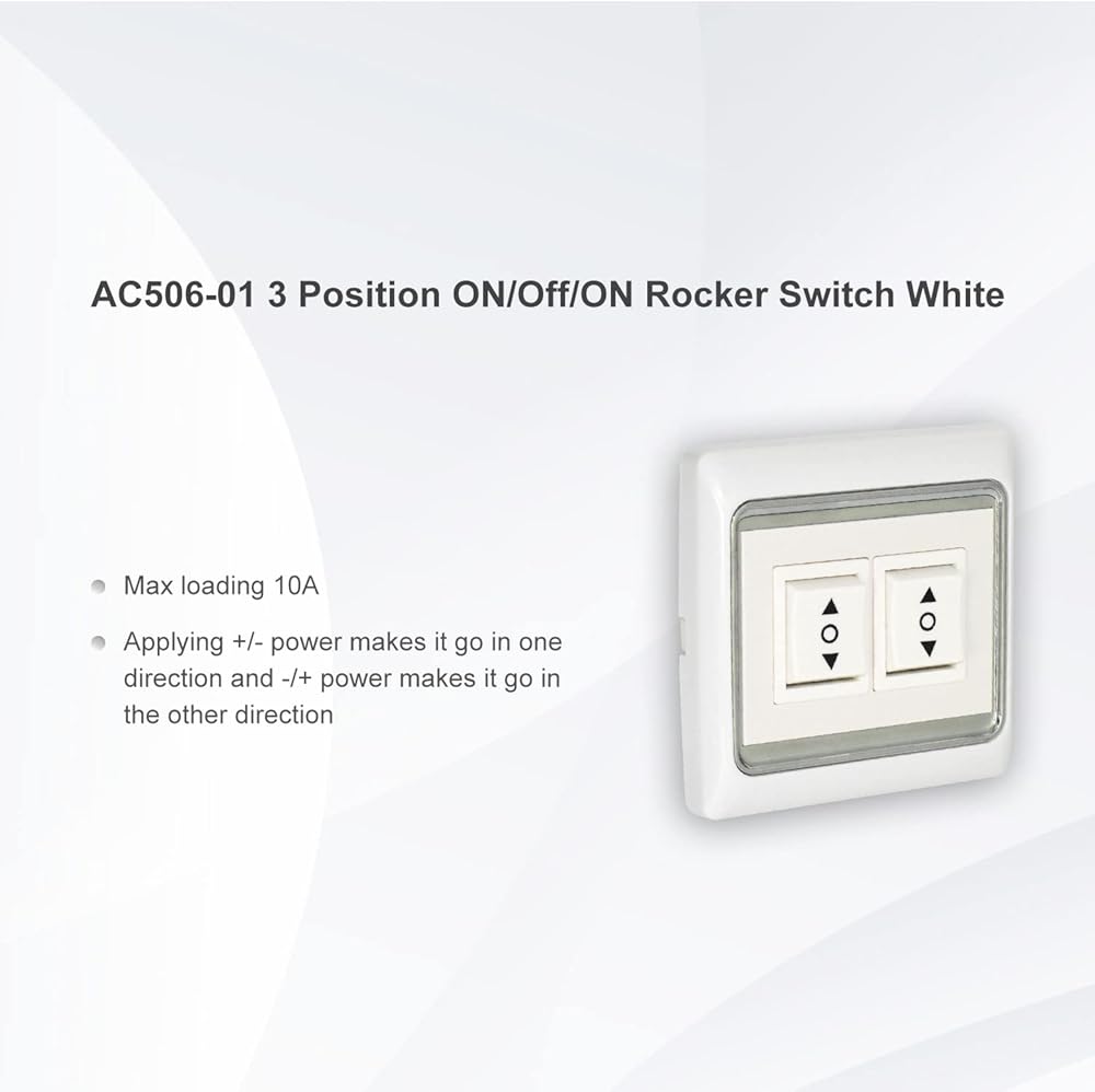 Rollerhouses AC506-01 3 Position ON/Off/ON Rocker Switch White AC120 60HZ Double Manual Wall Mounted Switch DPDT Work with Standard Mechanical Motor/Roller Shutter Motor