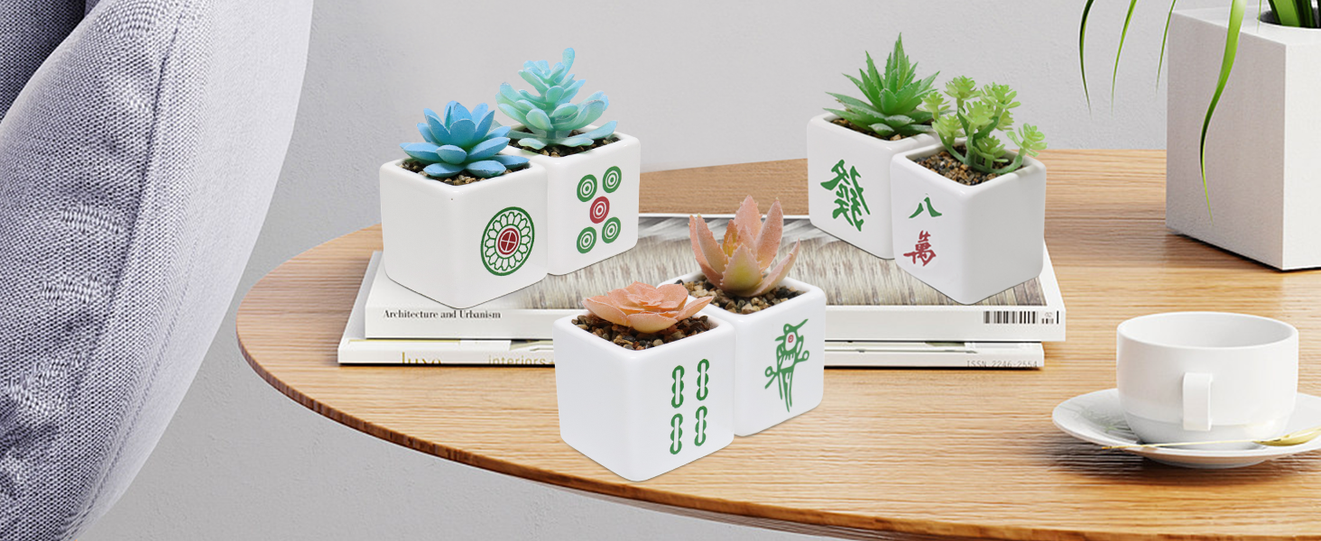 🎲🎲[Holiday Gift] Unique Cute Mahjong Ceramic Fake Flower Pot Represents Wealth 2-piece Set Desk Decoration Desk Decoration, Desk Decoration Partition Decoration, Shelf Decoration, Suitable for Theme Party Decoration, Holiday Decoration, Also Christmas, Halloween Company Opening The best holiday gift for housewarming.