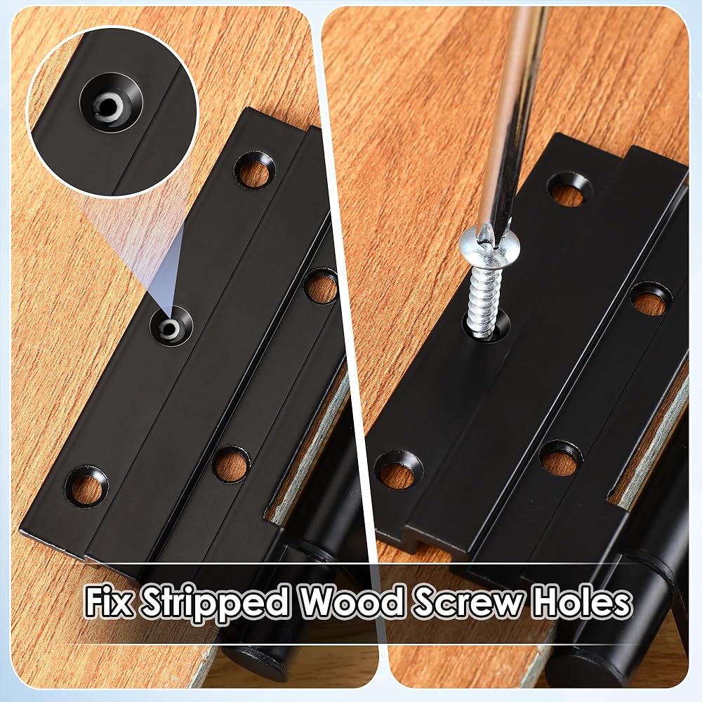 Specifically created to solve the commonest DIY problem, repairing stripped screw holes in door hinges, fittings, fixtures, modern and antique furniture, door locks, toys anywhere a wood screw hole need repair.