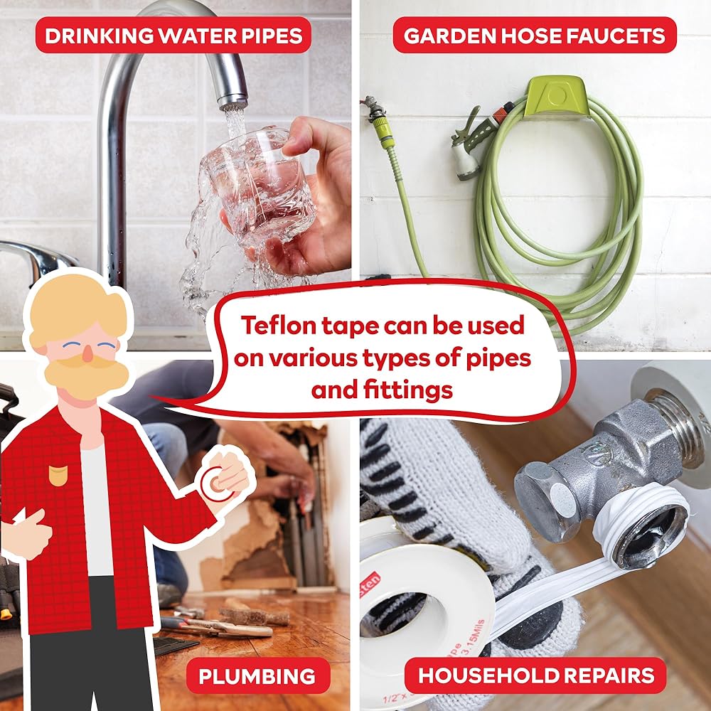 EASY-TO-APPLY. At 3.15mils, our plumbers tape for leaky pipes installs easily without mess or tearing for quick multiple layers for this plumbers tape for garden hose, pipes, and shower heads.