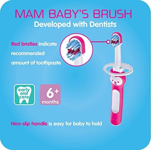 PROMOTES ORAL CARE IN BABIES 6+ MONTHS – Each MAM baby toothbrush cleans mouth and gums and helps establish an oral care routine Includes two MAM Baby's Brush toothbrushes