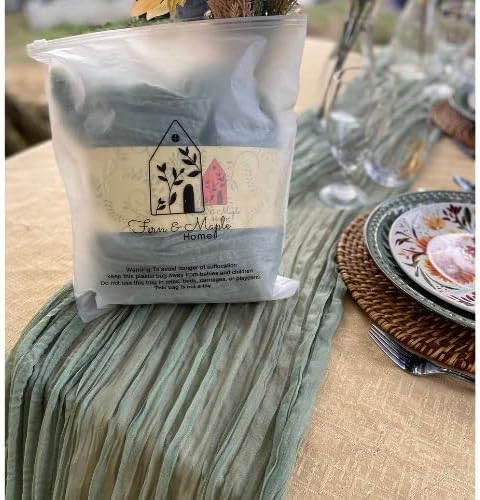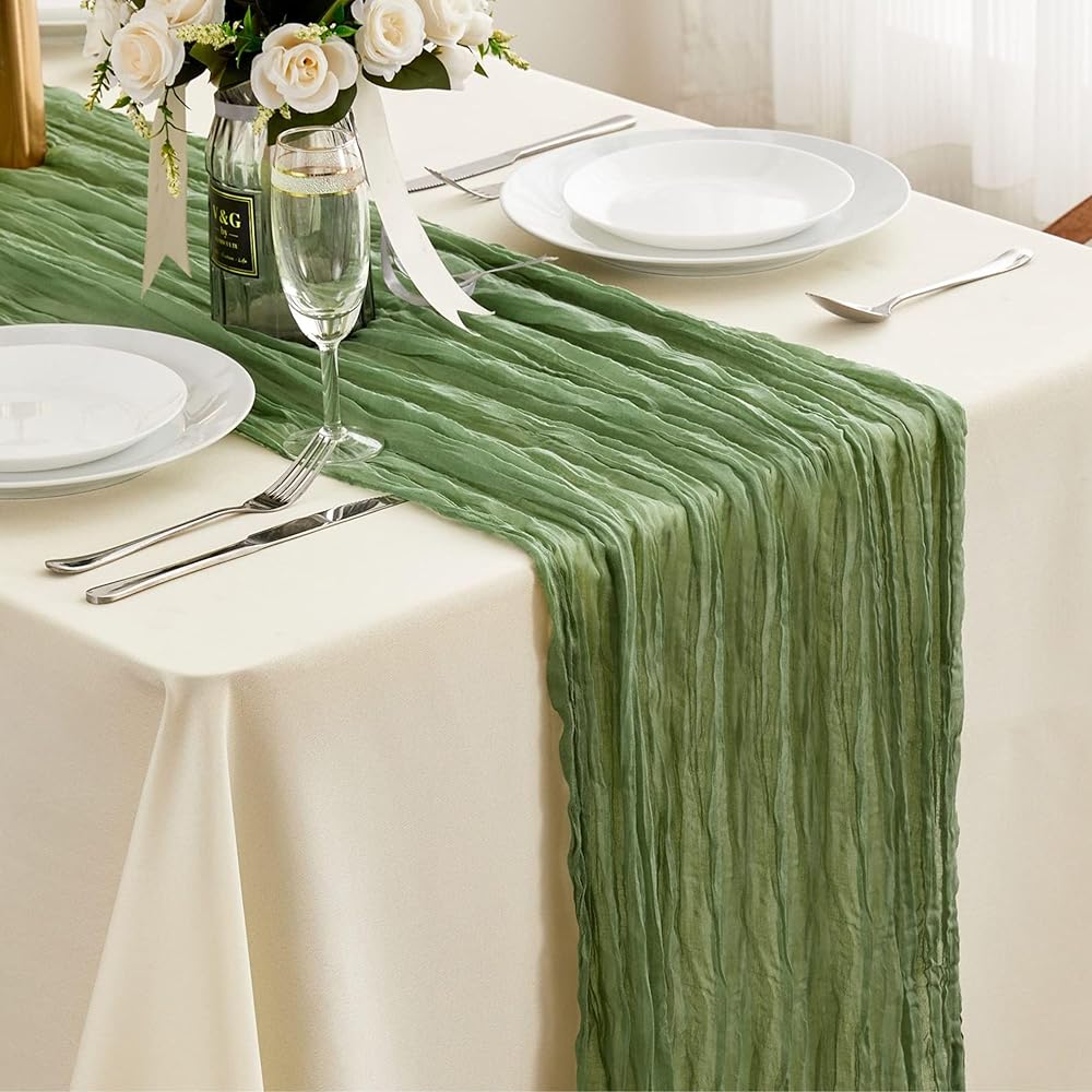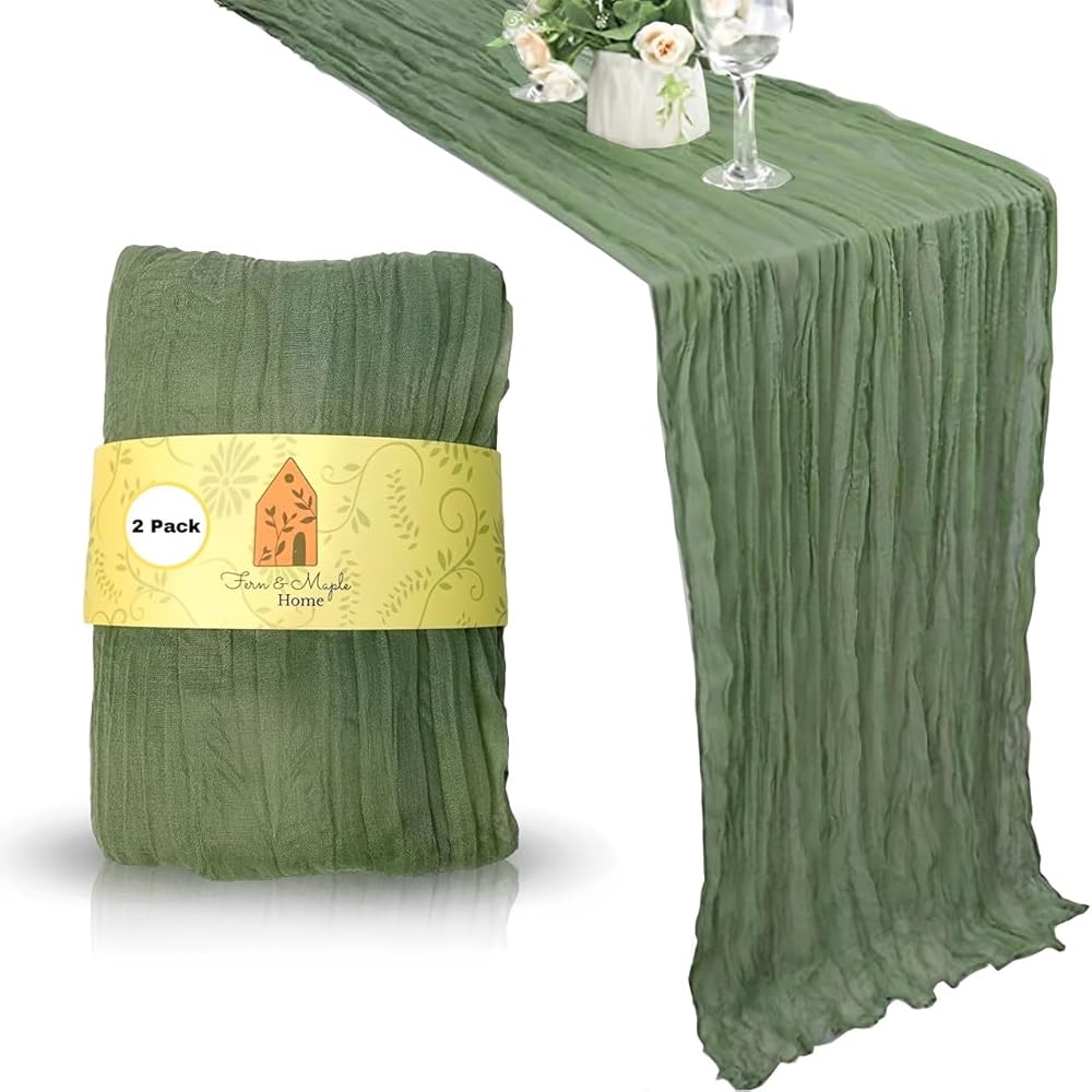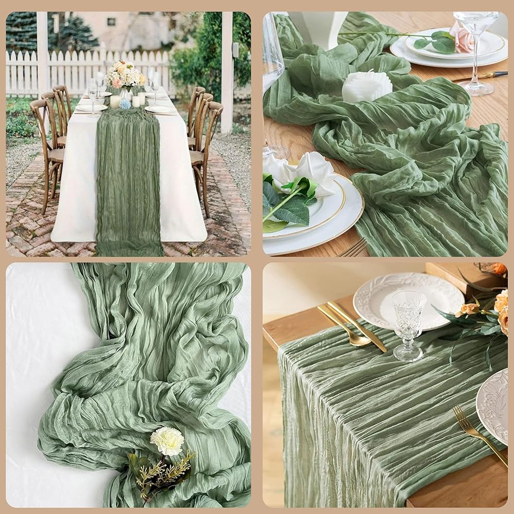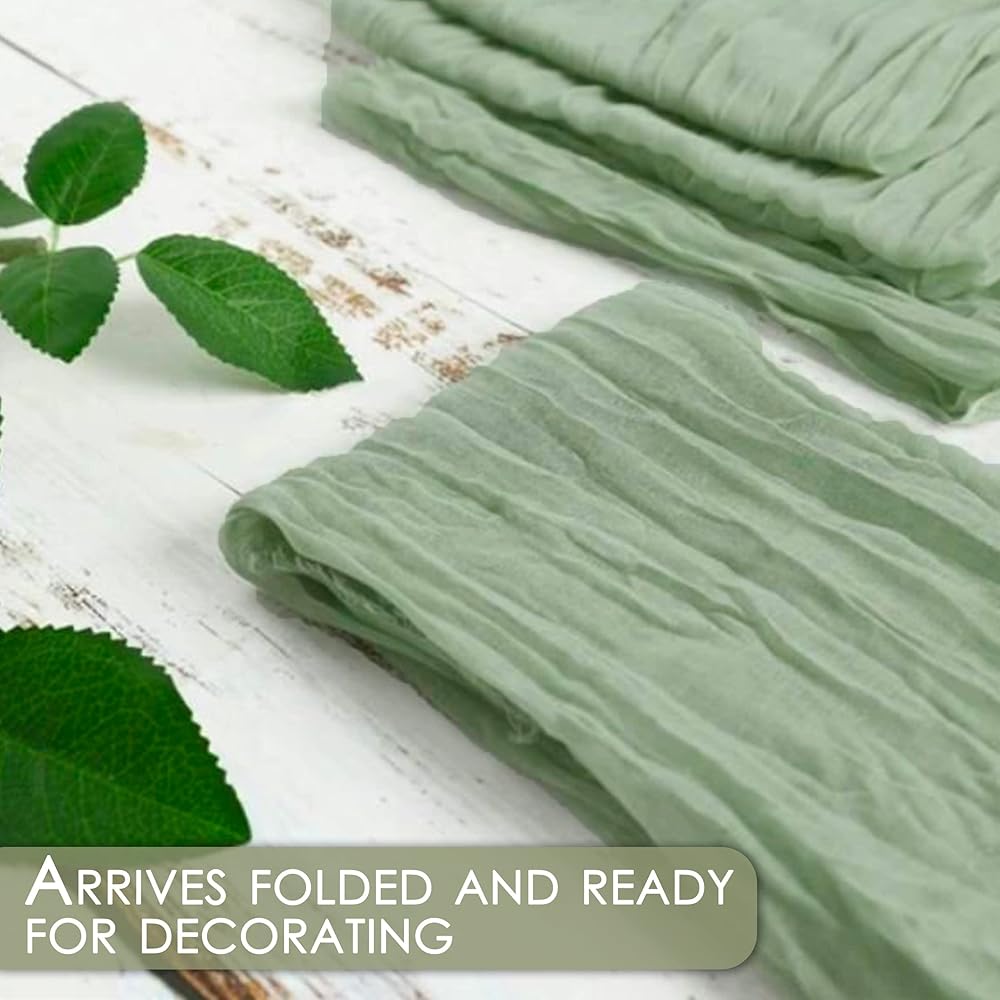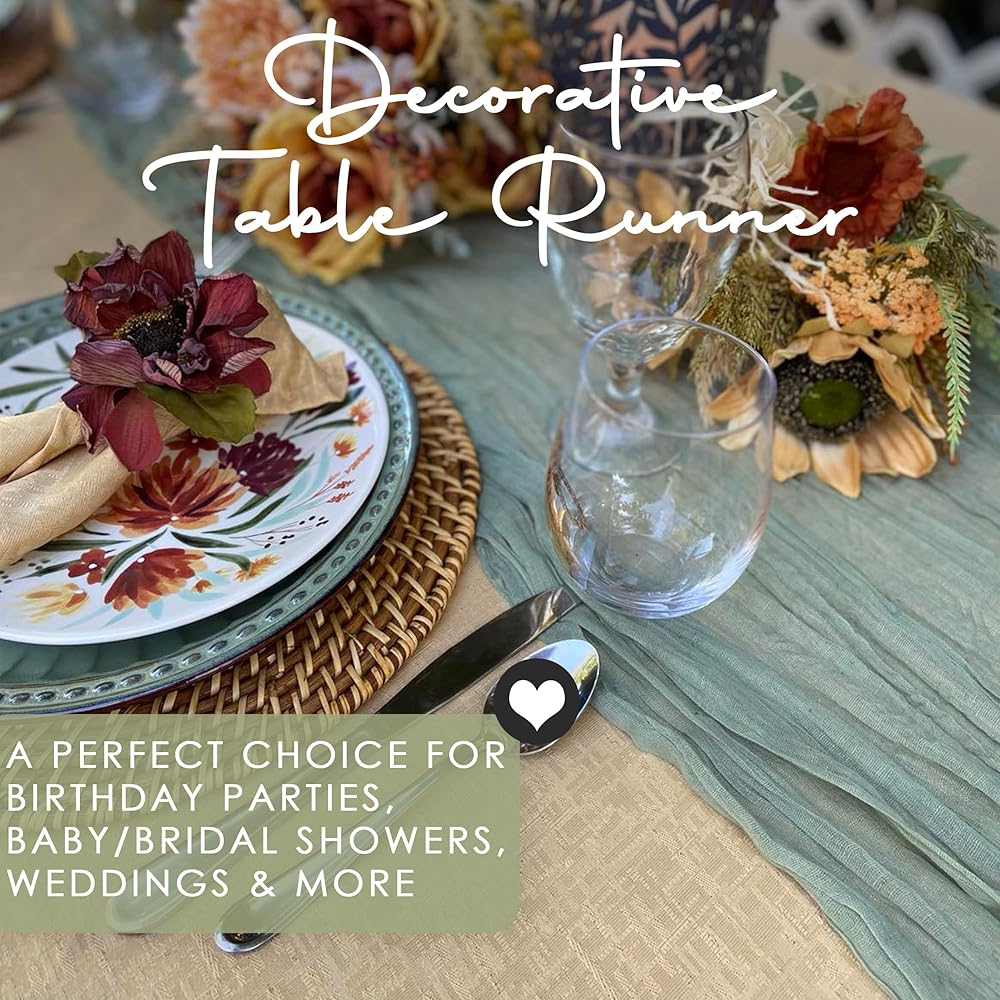Set of 2 Boho Table Runners: Our Cheesecloth Table runner bulk helps set the perfect mood to any modern or farmhouse-style dining room. Celebrate in style with this set of 2 Sage Green table runner, which is a great choice for wedding decorations, birthday parties, & more!