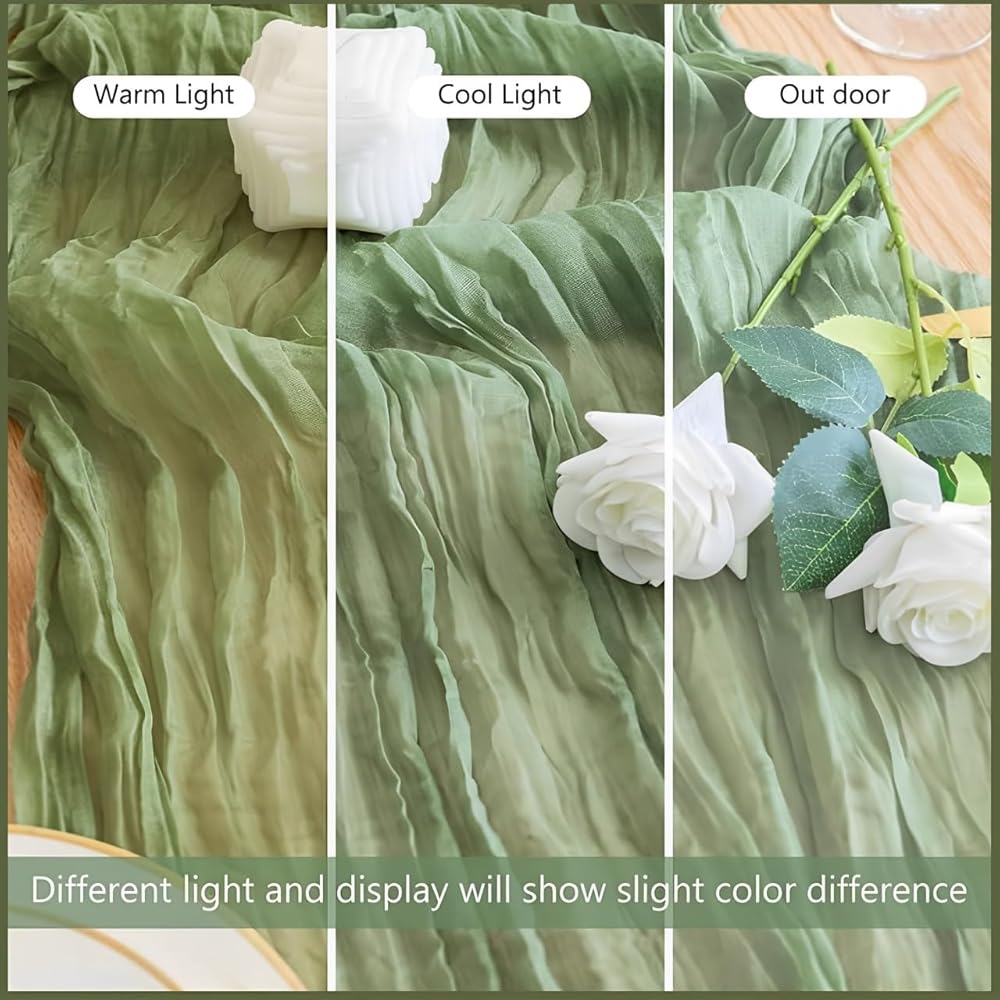 Great Gift: This Sage Green wedding decor is a great gift choice as an engagement gift, wedding gift, or as housewarming gifts. Give our cheesecloth table runner to someone special in your life and bring a smile to their face.