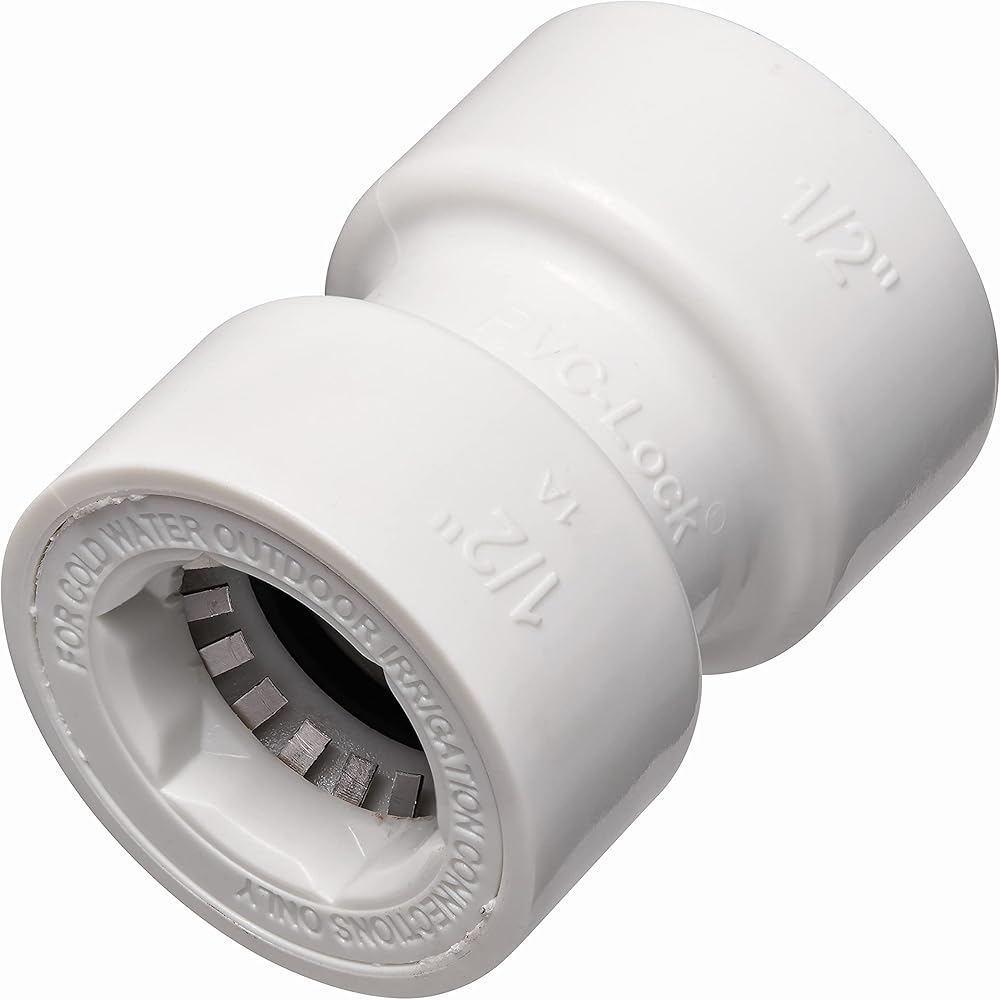 PVC-Lock fittings are designed for both constant and non-constant pressure outdoor irrigation use as a direct replacement for Schedule 40 PVC fittings. Tested to IGC 300 standards, PVC-Lock can withstand even the harshest of conditions associated with mainline valve-in and lateral line valve-out irrigation applications. Stainless steel teeth grip the pipe tightly and a special O-ring creates a watertight seal while still allowing for rotation of the fitting after insertion. A special advantage is that you can immediately pressurize the system with no wait time for joints to cure. The PVC lock bevel tool reduces the force required to insert pipe into fittings. The PVC-Lock removal tool enables easy maintenance and reuse of the fittings. Use PVC-Lock Slide Repairs to quickly repair a span of broken PVC pipe. For outdoor irrigation use with cold water only.