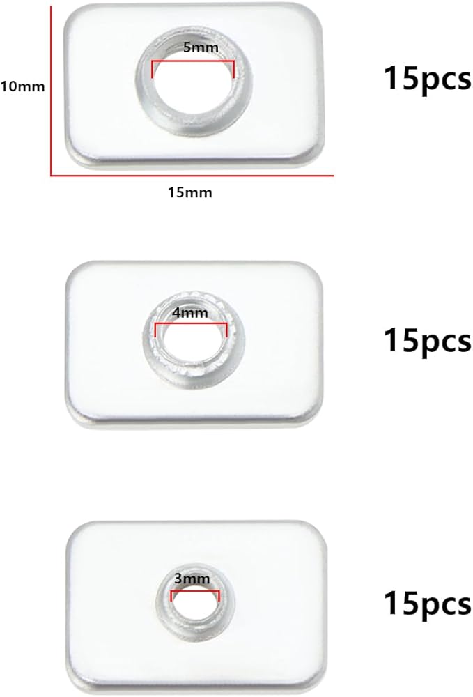 The base size of each nut is 15x10mm, but the connecting thread sizes are different, namely 3mm, 4mm, and 5mm.