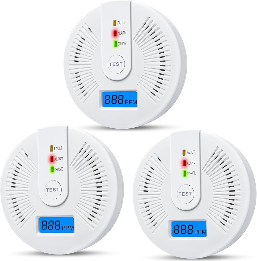 3 Packs Carbon Monoxide Detectors,CO Alarm Detectors Monitor Battery Operated with Digital Display for House Kitchen Office Restaurant Hotel