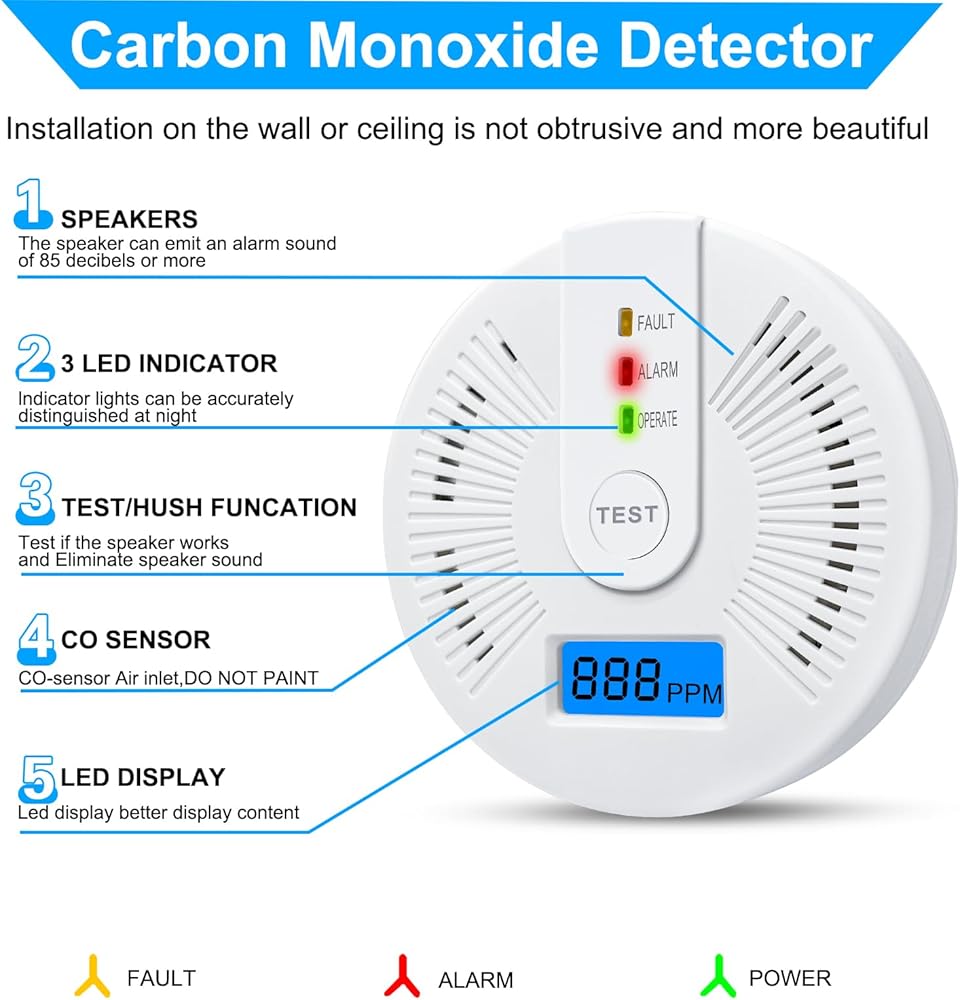 Immediate Alerts: Features a loud 85dB alarm and flashing red LED light, instantly notifying you of dangerous CO concentrations in just minutes.