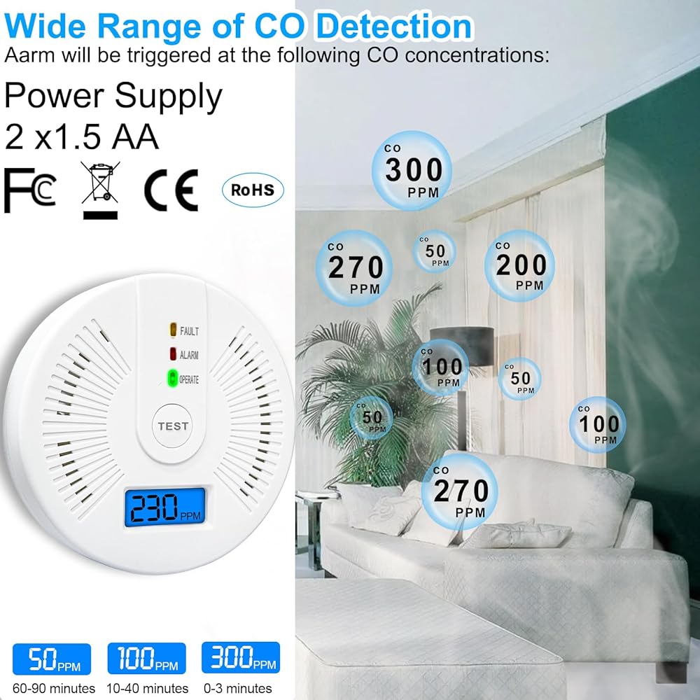 Advanced Safety: Equipped with an electrochemical CO sensor for precise detection, ensuring your family's safety with continuous monitoring of carbon monoxide levels.
