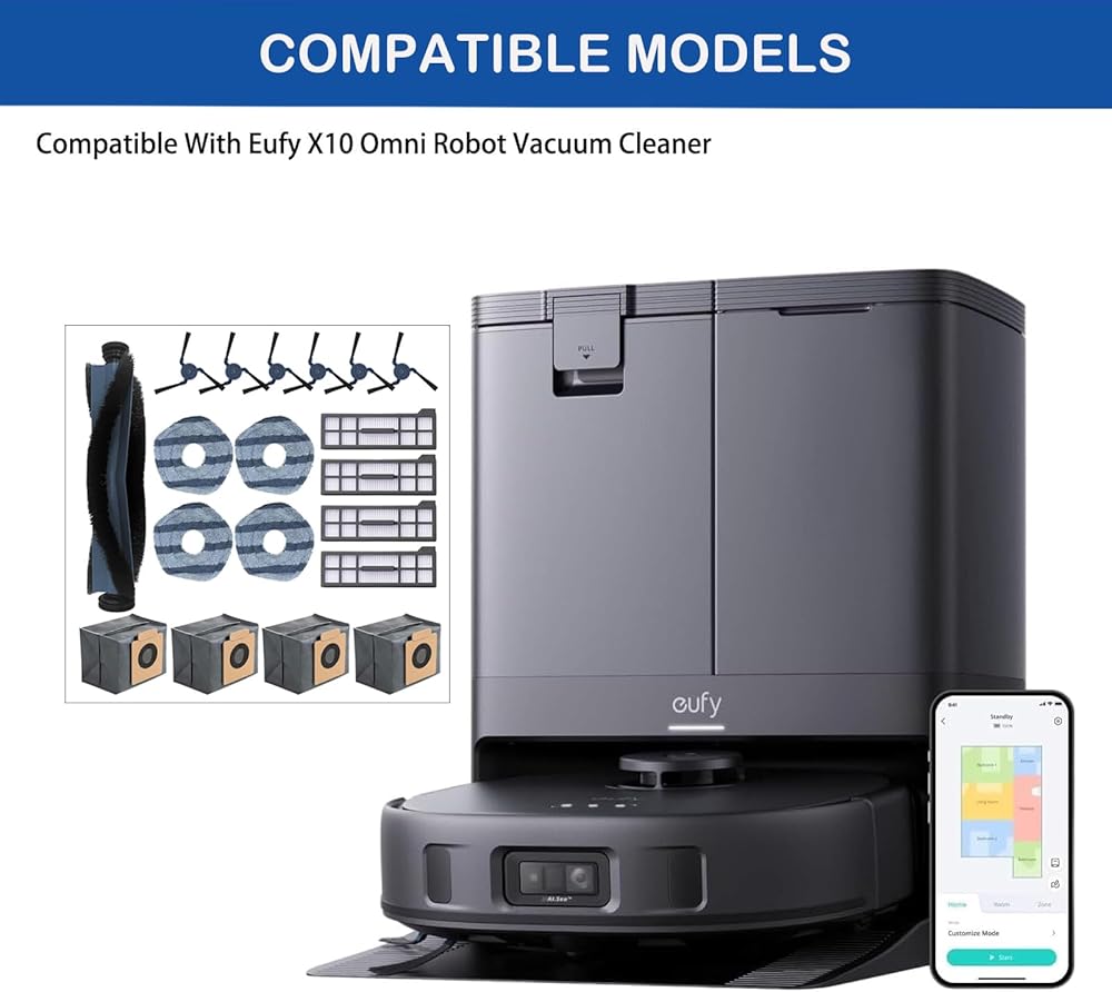 【Vacuum cleaner model】Replacement parts accessories compatible with X10 Pro Omni Robot Vacuum. This set works as great as the original ones, with precision fit . Please confirm your model before purchasing.
