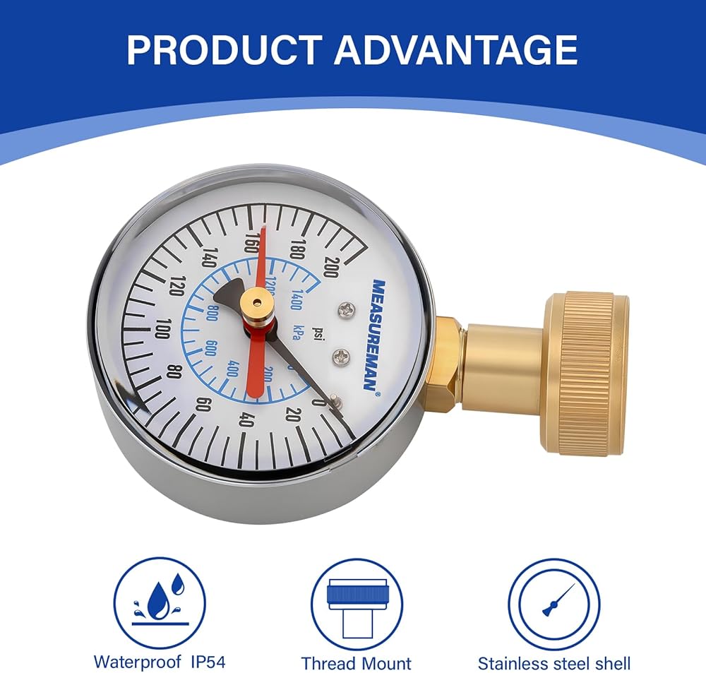 This pressure gauge is meticulously crafted for precise water pressure measurement, making it ideal for irrigation systems and residential applications.