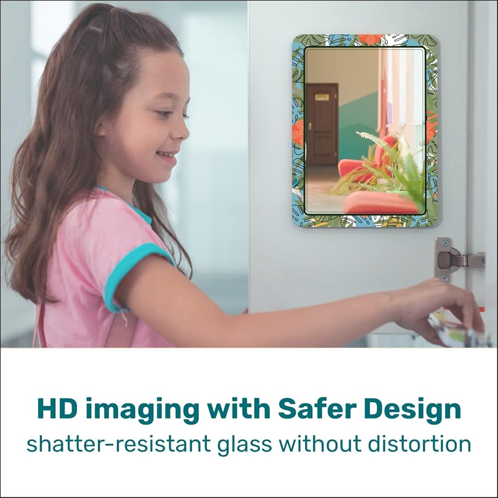 CLEAR HD IMAGING. Our mirrors aren't just reflective surfaces – High quality float glass is used to make mirrors to ensure More clear and realistic images. Our locker mirror is designed to prioritize safety and provide crystal-clear clarity. Keep it safe and clear for your personal grooming needs and makeup checks.