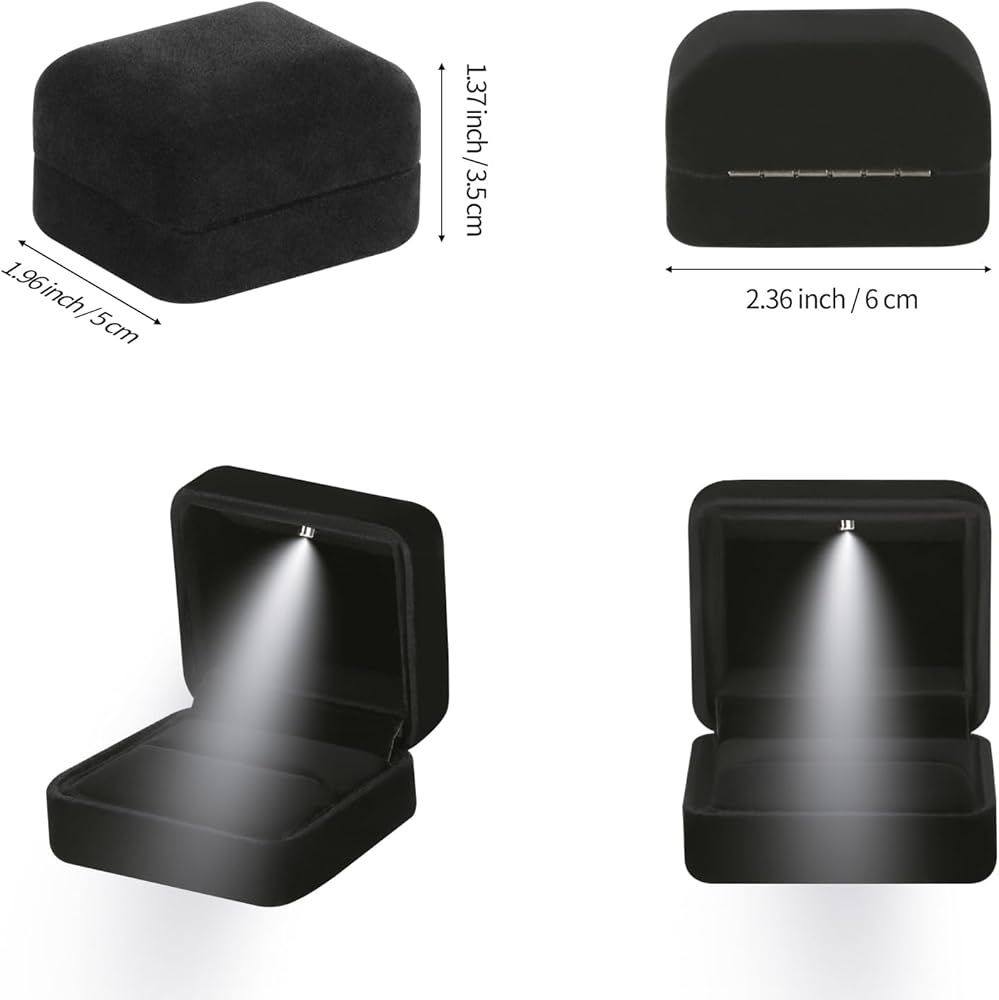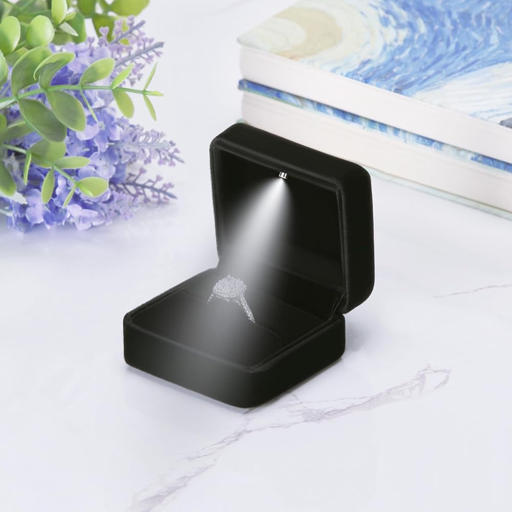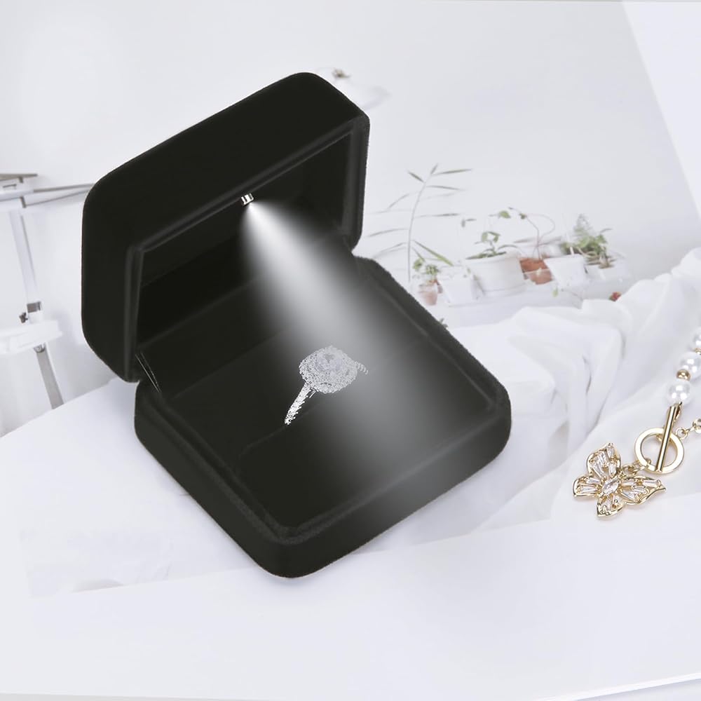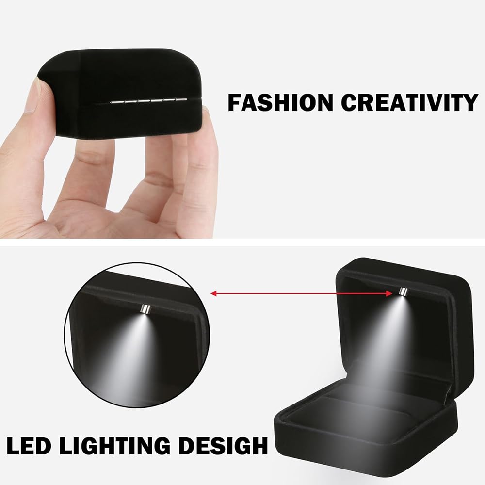 LED LIGHT - There is an LED light inside the ring box, which allows you to open the ring box and automatically light up. The effect is amazing. The soft light shines on your jewelry, making your jewelry more beautiful and shining, perfect display of your jewelry