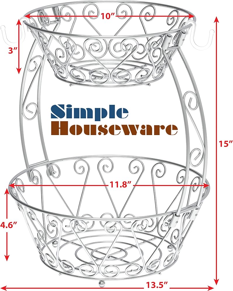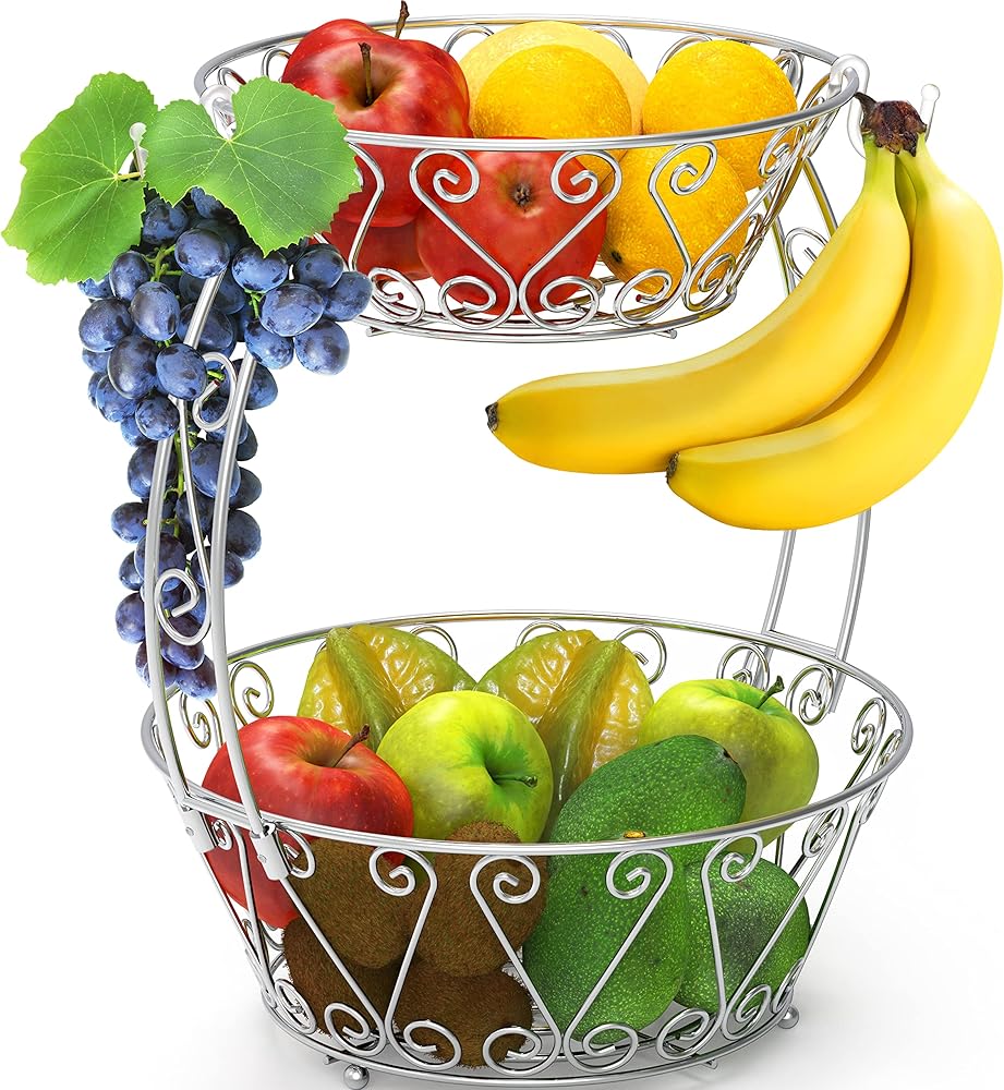 - 2 tiers fruit bowl to hold various sized fruits, such as bananas, grapes, apples and oranges...