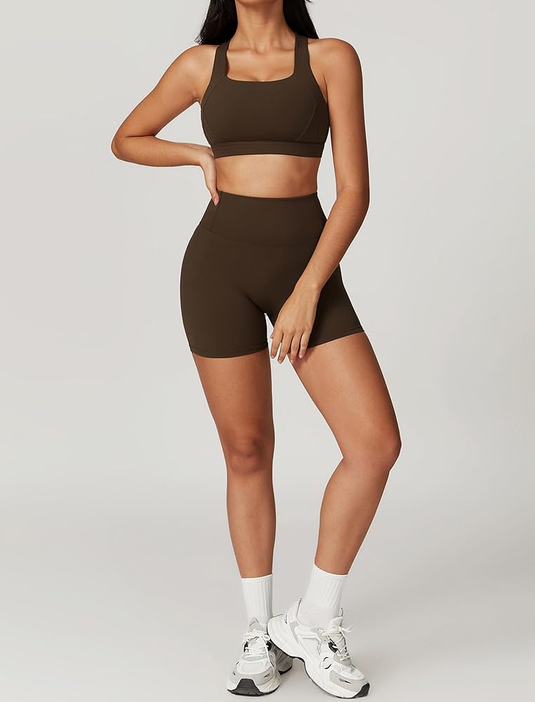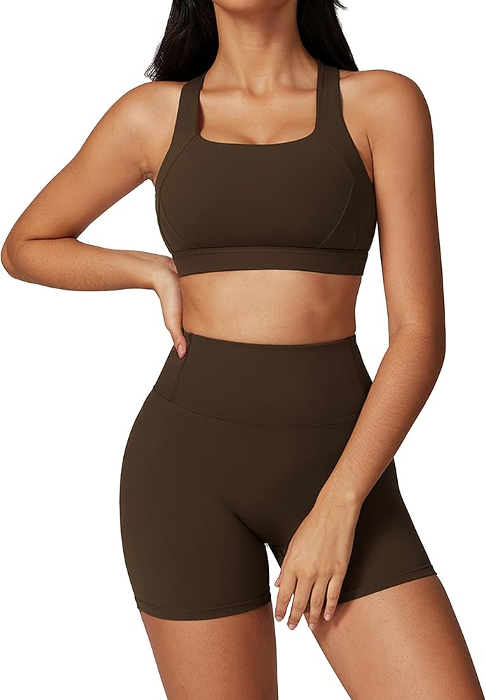 ❤ ❤Womens 2 Piece Workout Sets Buttery Soft Cross Back Sports Bra High Waist Gym Shorts Sets❤ ❤
