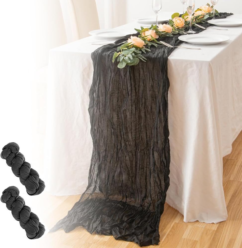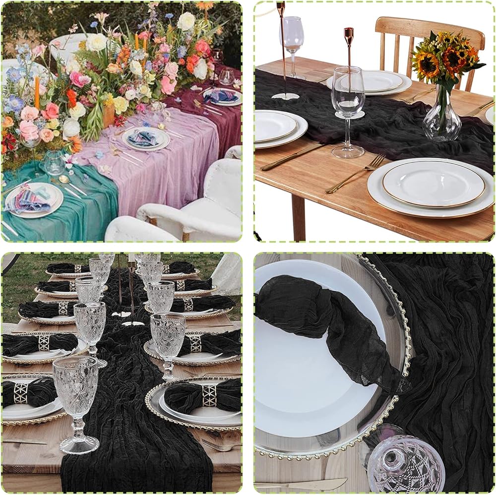 Cheese Cloth Table Runner:This translucent gauze table runner has a pleated design and it is very soft and can be folded at will.It can be used as a daily table centerpieces or for special events such as weddings and baby shower