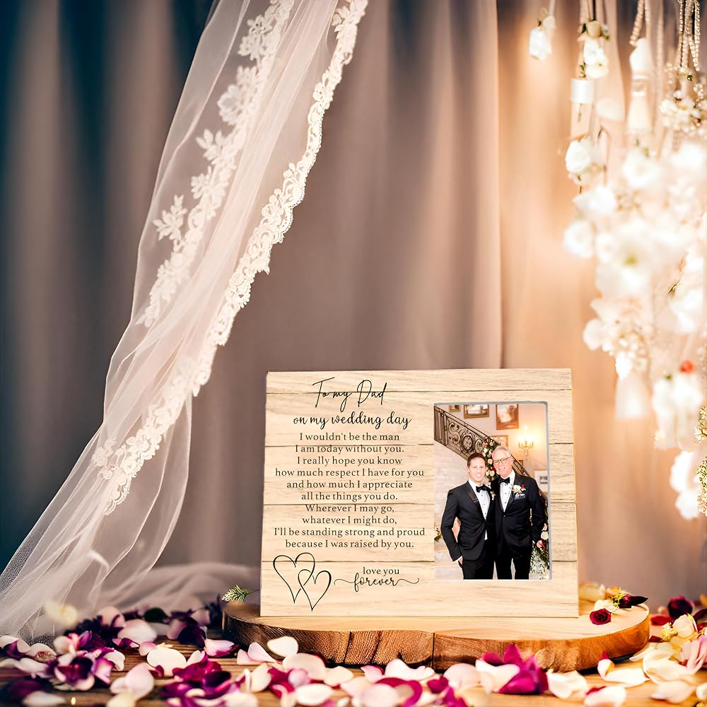 Wedding Day Gift for Dad from groom: Perfect wedding picture frame for father of groom from groom wedding day, thank you dad wedding gift from groom, dad/step dad wedding keepsake frame from son. The great dad gift is a personalized picture frame that will last a life time.