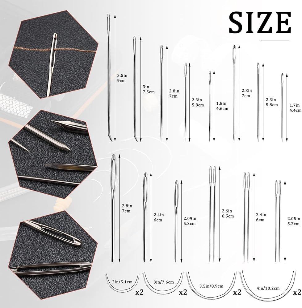 DIY Heavy-duty Leather Sewing Kit: You can sew different leather, fabric, denim, canvas or tarpaulin, or other projects, and use these hand needles on carpets, canvas, upholstery, coats, tents, mattresses, furs, and leather.