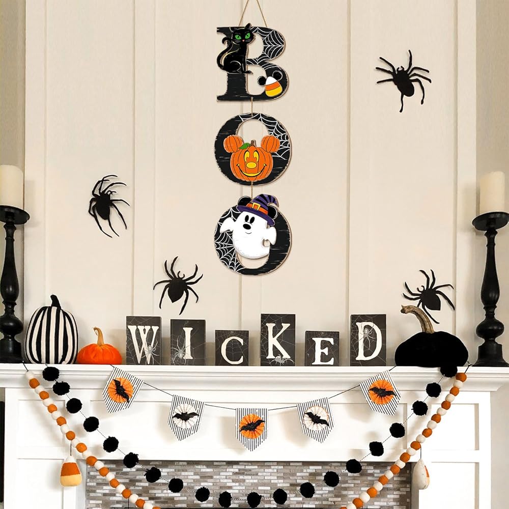 Unique Design: The mouse shaped door sign hanging on the outside gives your home a Halloween touch. Classic and unique, detailed and exquisite. Pumpkin mouse design, featuring Halloween icons like black cats, spider web, pumpkins, and 'BOO' for spooky seasonal decorating. The eye-catching Halloween decoration will attract and surprise your guests.
