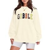 Trendy Glitter Patch Design: Celebrate Thanksgiving in style with our vibrant "Gobble" letter print sweatshirt. The funny glitter patch design adds a festive touch to your wardrobe, making it perfect for holiday gatherings and seasonal festivities.