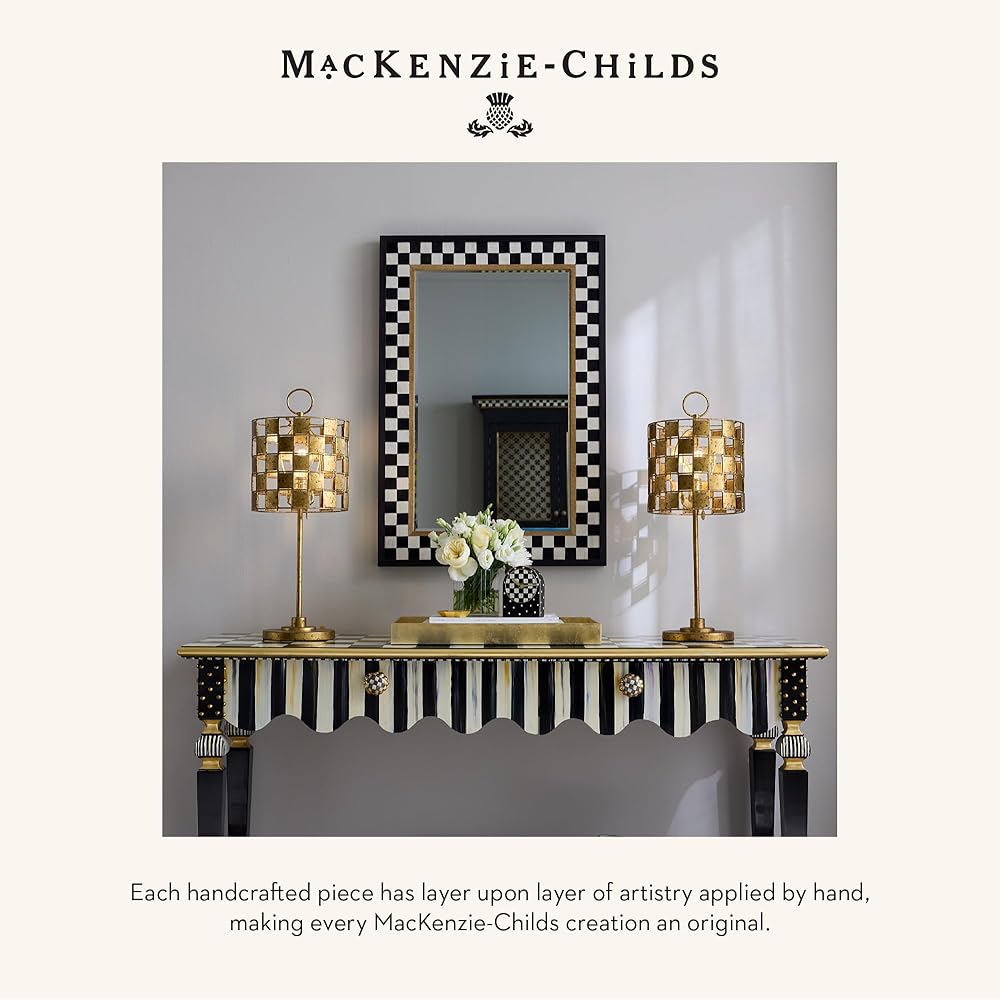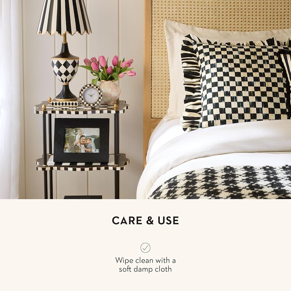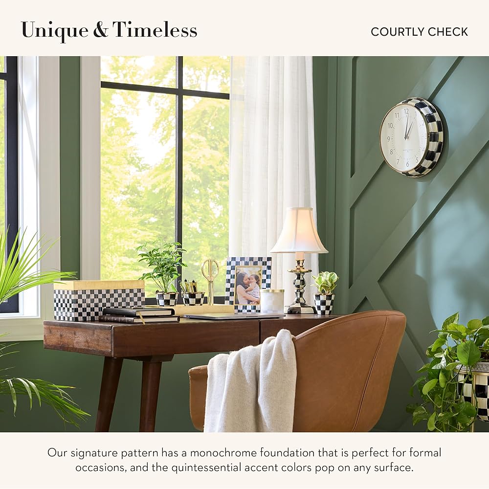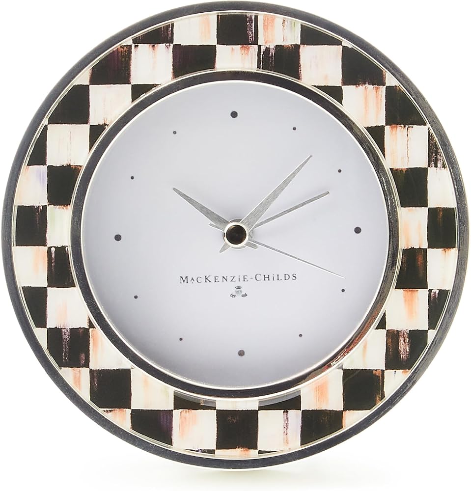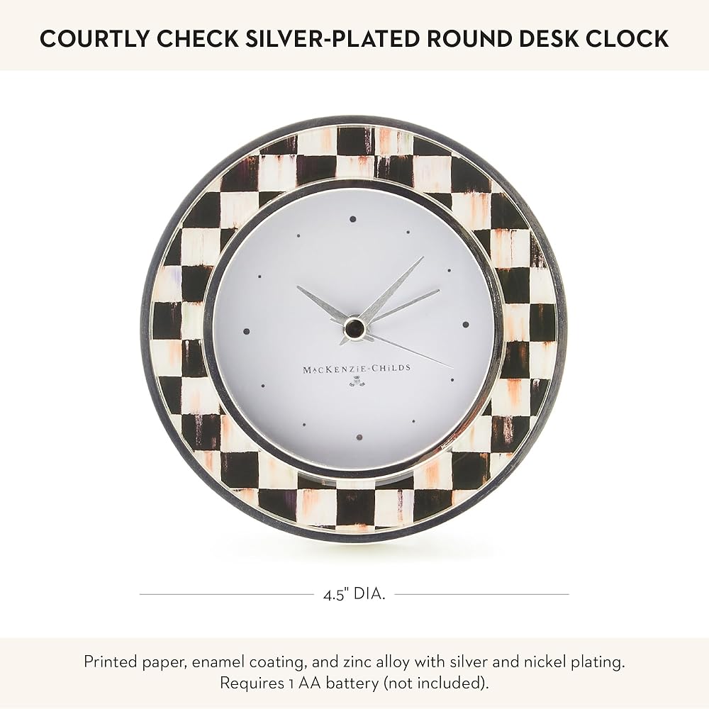 MACKENZIE-CHILDS Silver-Plated Round Desk Clock, Decorative Clock for Living Room, Kitchen, or Office, Black-and-White Courtly Check
