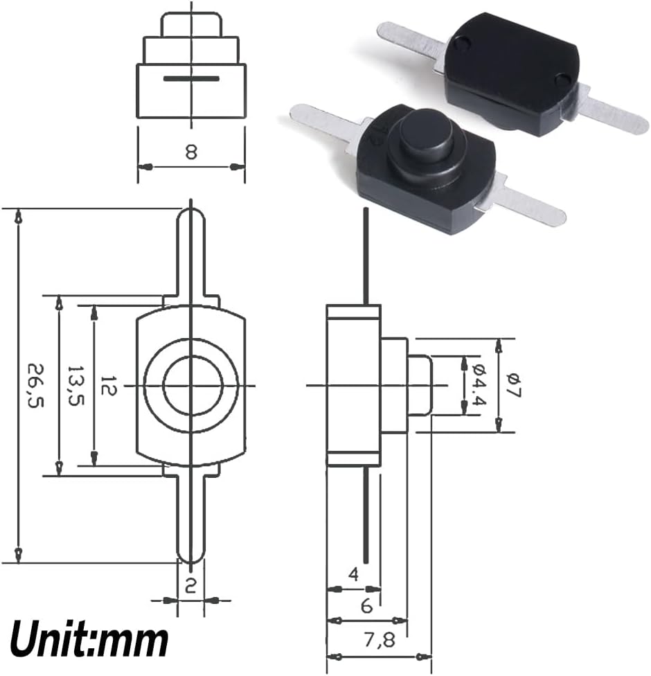 Wide Application: Small switch can be used in flashlight, appliance, electric torch, or electronic DIY projects