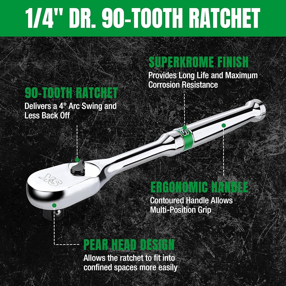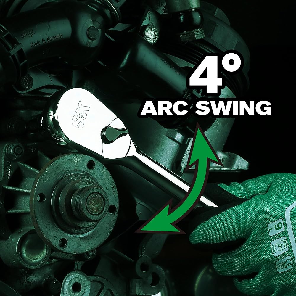 90-tooth smooth ratchet gears only need a 4 degree swing arc to move fasteners. Pear head design for ultimate access in the narrow spaces. Great precision to engage fasteners quicker