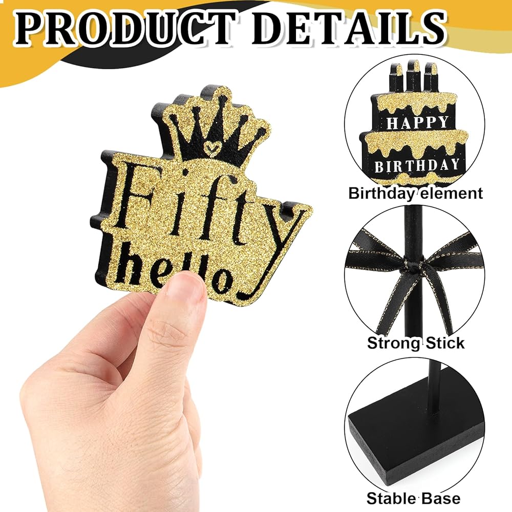 Good Design: This set of wooden stands features printed design in black and gold with beautiful ribbons, make your party more unique and eye-catching.
