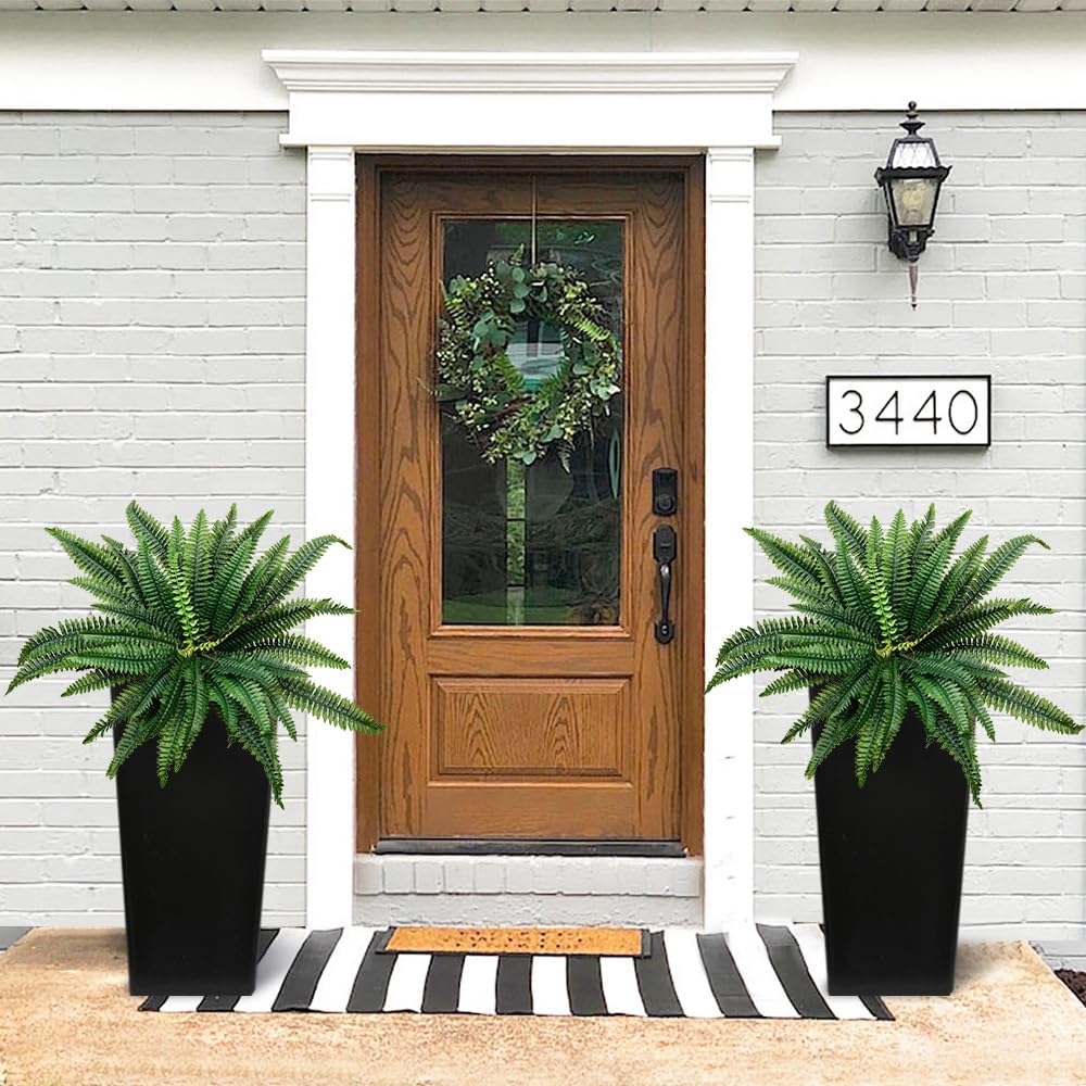Fake Ferns Plants Outdoor for Front Porch: Outdoor fake plants are made from high quality plastic.The faux leaves&faux Stems are made of plastic,This fake bushes will never die off, can against fierce wind rainstorm,outdoor artificial plants uv resistant.