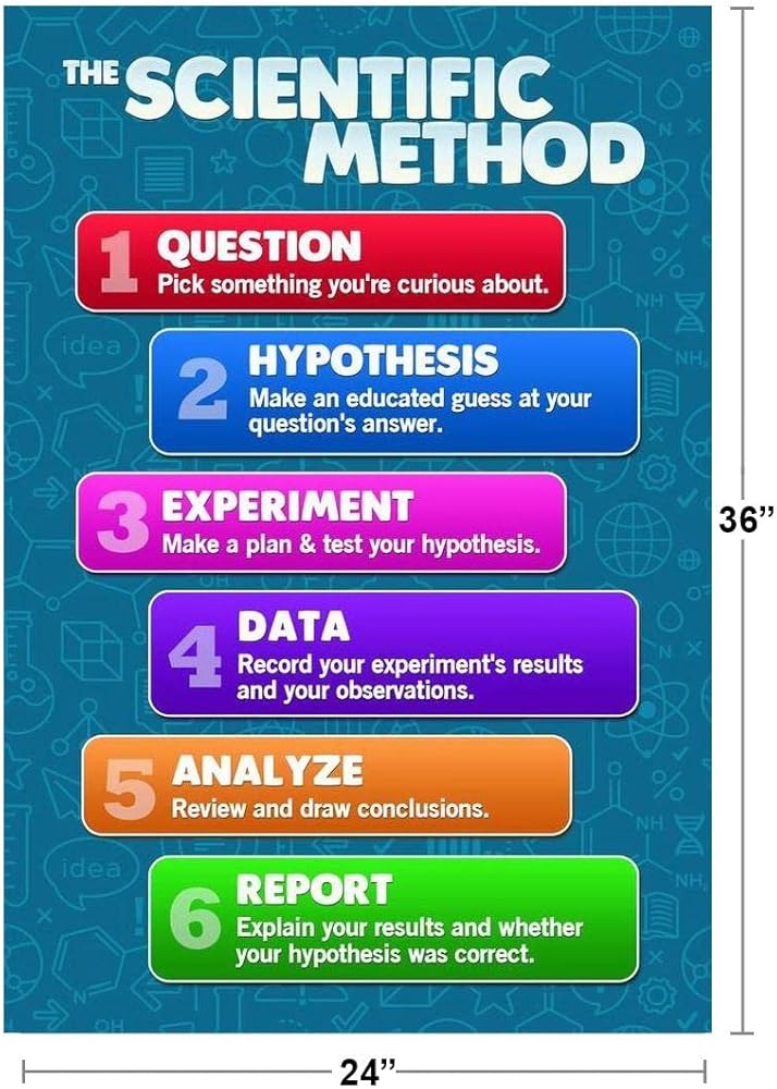 The Scientific Method Posters for Classroom Science Decorations Teacher Supplies Scienctic Investigation Process Chart for Kids Cool Wall Decor Art Print Poster 16x24