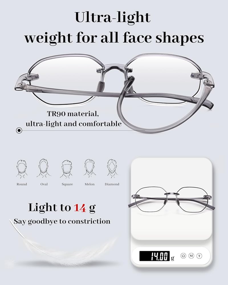 ★Light and Comfortable - These minimalist frameless reading glasses weigh only 18g, so light that you can hardly feel that you have them on. Experience zero uneasiness and discomfort even after long hours of wearing these rimless readers.