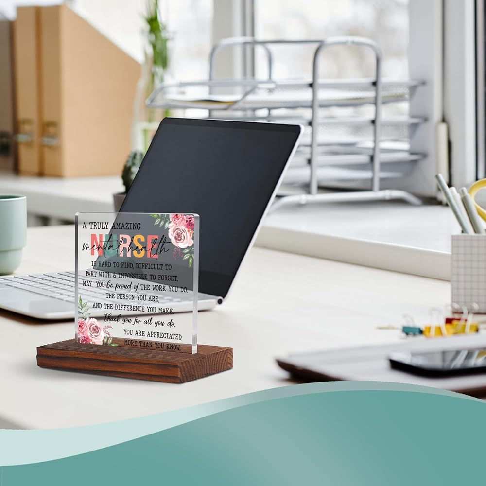 【Thank you gifts for home health nurses】 This elegant 4.7 x 2.7 x 4.3 inch clear decor desk sign is a tribute to the exceptional and unforgettable impact that nurses have. With the words "A Truly Amazing Nurse," it's a celebration of their hard-to-find dedication and memorable contributions to healthcare.