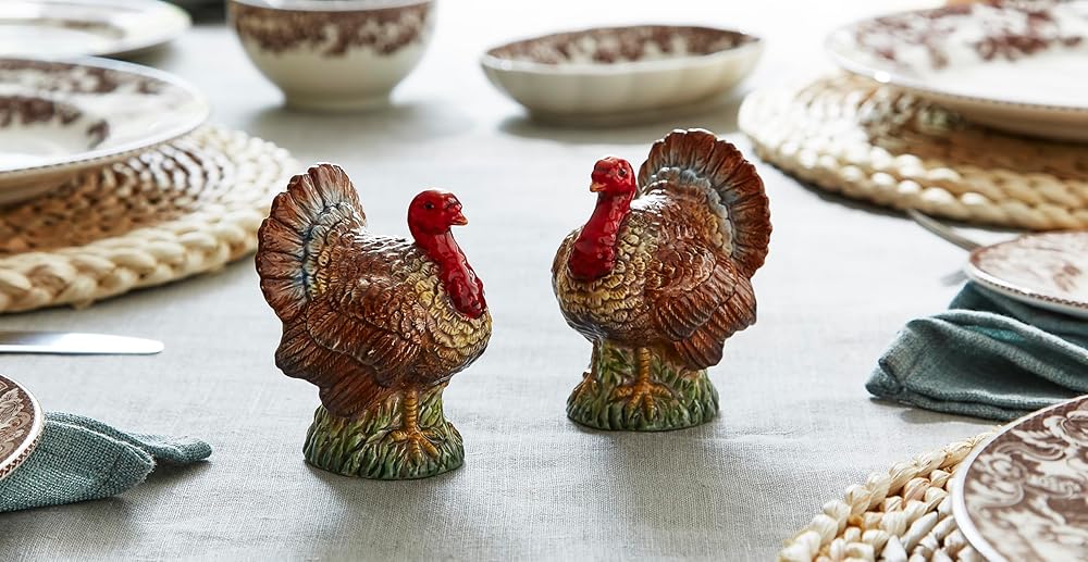 Spode 3.5" Turkey-Shaped Salt and Pepper Shakers - Dolomite Ceramic Farmhouse Décor for Formal Dining, Decorative Salt & Pepper Set with Easy Refill Bottom Stoppers, Ideal for Thanksgiving Table