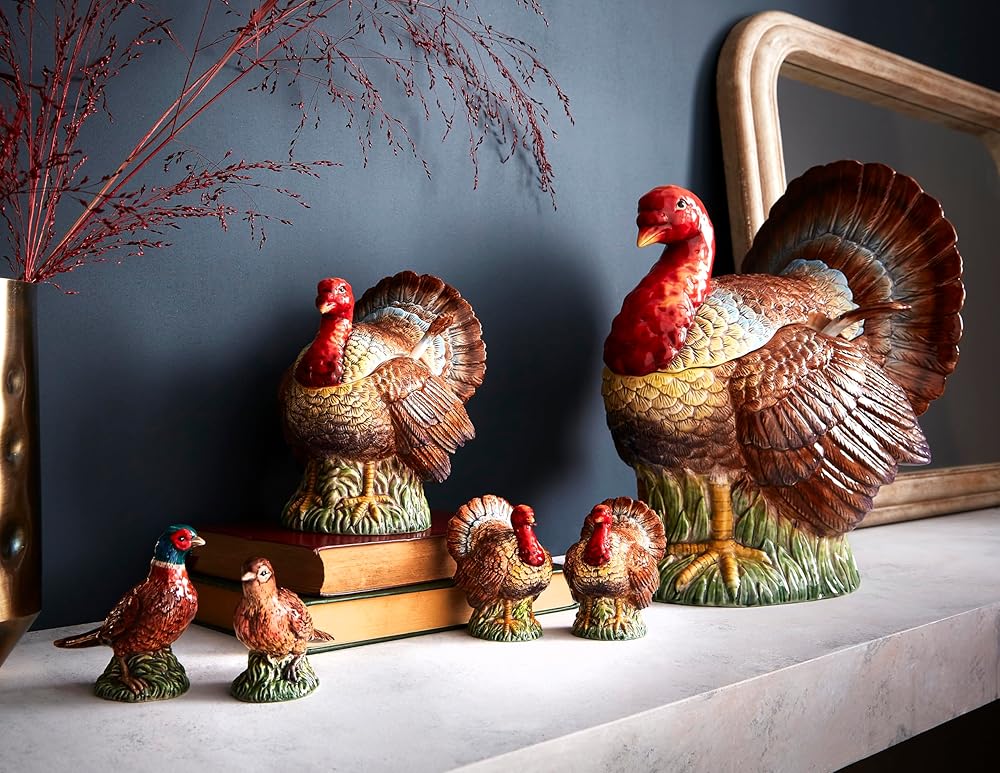 The Woodland Collection salt and pepper shakers are a delightful embodiment of traditional English hunting scenes, infusing your dining experience with a sense of adventure and timeless charm. Each shaker showcases a captivating turkey design, perfect for adding a touch of seasonal flair to your table. Ideal for Thanksgiving and other festive gatherings, these shakers bring the spirit of the hunt indoors, making them standout pieces that enhance your holiday decor. Crafted from dolomite, they are not only durable for both casual and formal occasions but also add a sophisticated touch to your farmhouse decor. Whether you're setting the table for a festive family dinner or hosting a themed party, these salt and pepper shakers help create a warm and inviting atmosphere. They also make an excellent gift for friends and family who appreciate unique kitchen accessories and enjoy entertaining. Perfect for housewarmings, birthdays, or holiday presents, these shakers combine functionality with decorative charm, making them a thoughtful and stylish addition to any kitchen.