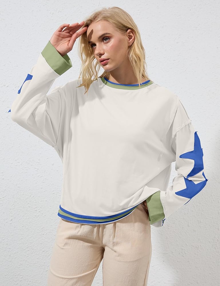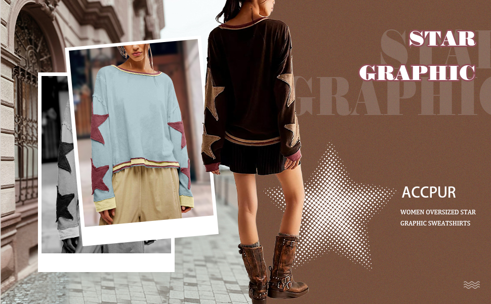 【Material】Oversized Sweatshirts for women are made of skin-friendly cotton fabric and comfy to wear. Womens sweatshirts featured with oversized style and with fashion vintage star, perfect color block tunic tops to wear with leggings.