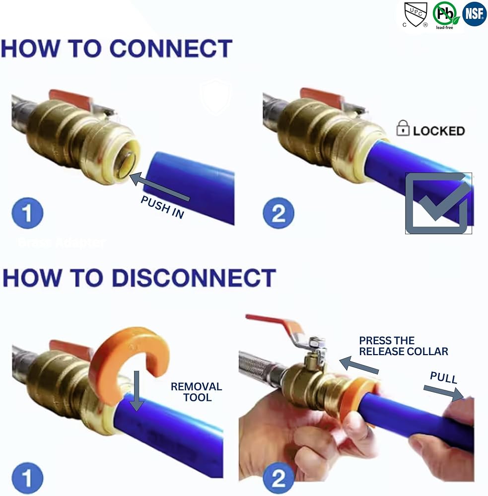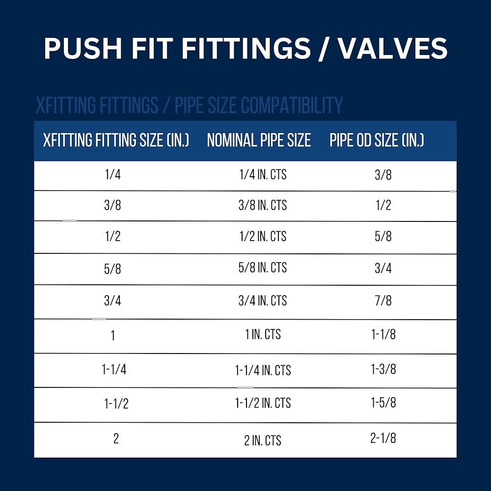 XFITTING Push-Fit connection system it's the easiest and fastest way to join copper, CPVC or PEX pipe in any combination - with no soldering, clamps, unions or glue. Just insert the pipe and the stainless steel teeth bite down and grip tight, while a specially formulated O-ring compresses to create a perfect seal. Just push connect by hands, within 1 minutes to finish installation, makes our life more efficient, fast, save time and strength and your money. Disassembly is just as fast using the simple disconnect tool. So fittings and valves can be easily changed and reused. They can even be rotated after assembly for easier installation in tight spaces. Get a grip on your next plumbing project. · Instant Push-Fit connection for increased ease-of-use. · No soldering, clamps, unions, or glue required. · Fits copper tubing, and CTS CPVC and PEX and connects all three types in any combination. · Integral tube liner for PEX installations, so no loose components, ensures secure, reliable connection. · Compact, robust LEAD FREE brass body. Foundation of a strong, corrosion resistant, durable fitting. · Design certified to ANSI/NSF-61 and ASSE 1061 product standard · Approved to be used underground and behind walls without access panels. · Max presure: 200psi · Max temperature: 200F