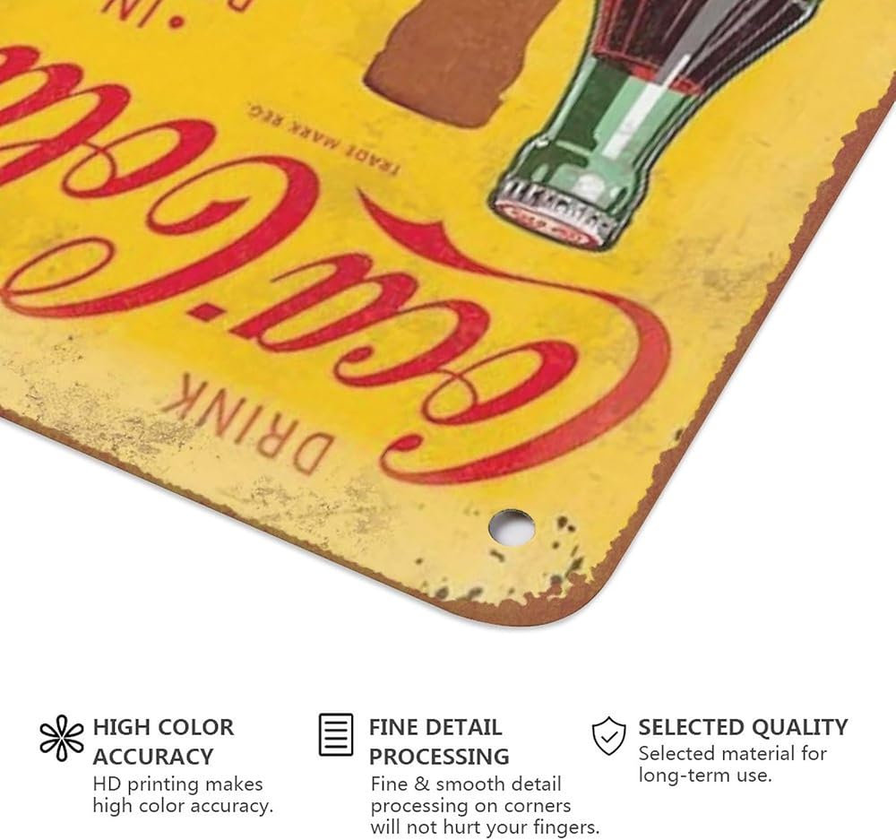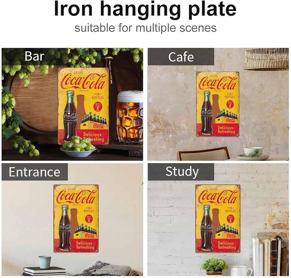 Coca Cola Metal Tin Sign Delicious Refreshing Poster Retro Metal Sign Vintage Tin Sign for Cafe Bar Home Wall Decor 12 X 8 inch