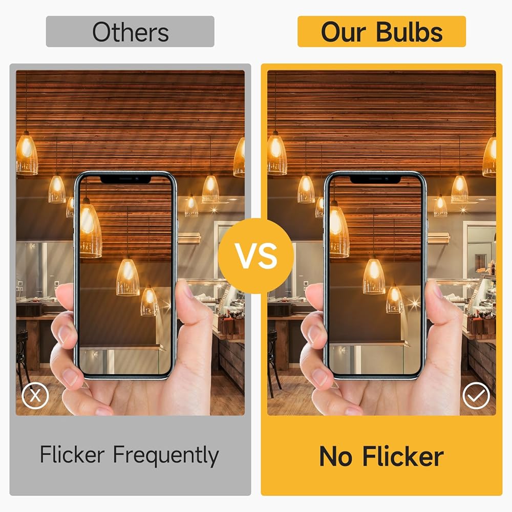 Dimmable: Compatible with most LED dimmers, these clear bulbs allow smooth brightness adjustment from 0 to 100% for different scenes
