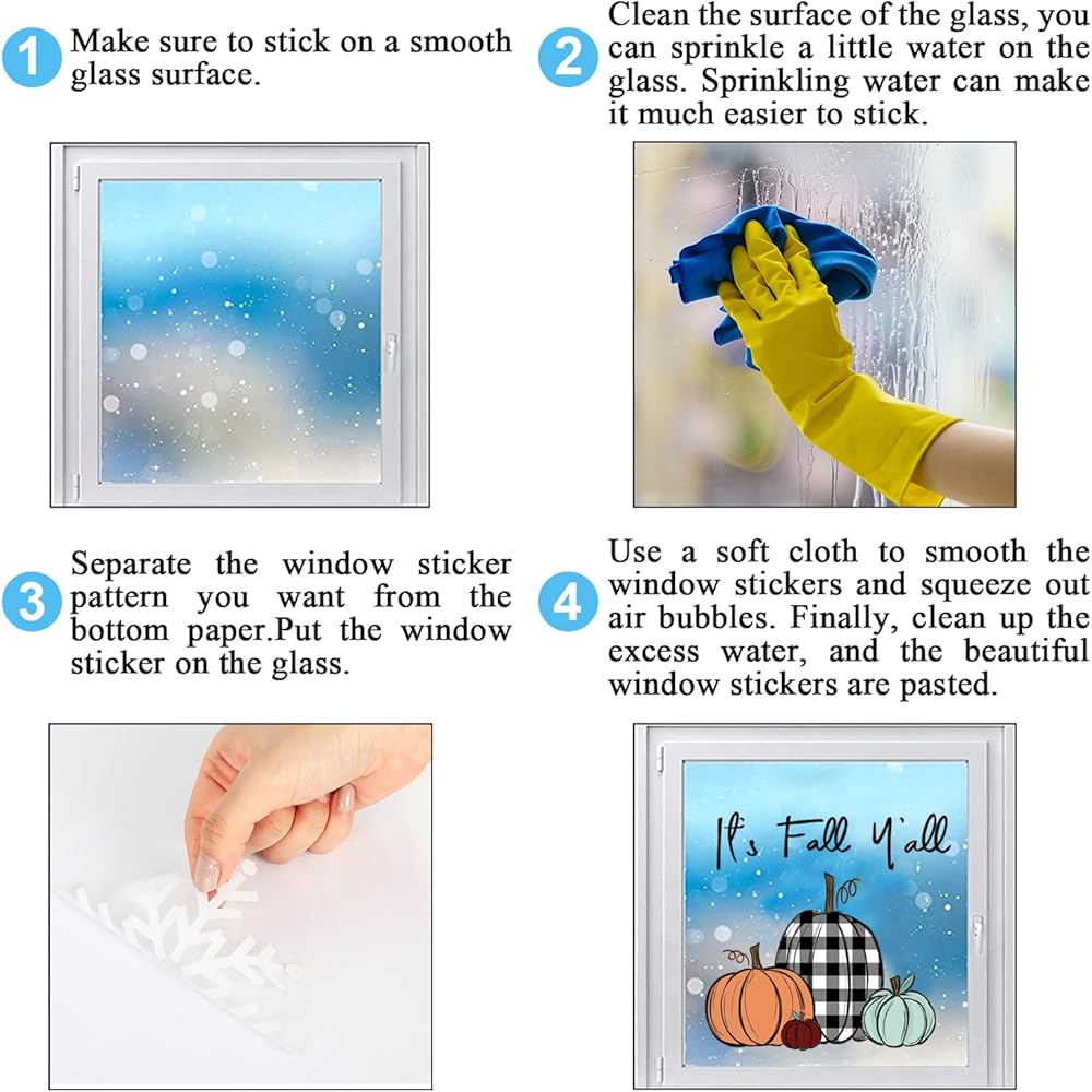 4 sheets fall window clings patterned with diverse boho autumn elements, stylish and chic, great way to prevent birds from flying into your windows and decorate your home and office.