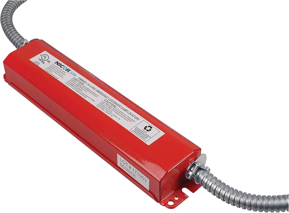 The NICOR EMB80 is an LED emergency driver designed for factory or field installations that enables normal and emergency operation of a switched or non-switched LED fixture. During a power failure, the EMB80 activates emergency mode to maintain consistent output wattage to the fixture without light degradation for a 90 minute duration. The EMB80 contains a 6-Volt, 4000mAh Ni-Cad battery, charger, test switch, and converter circuit in a powder-coated steel finished housing. Protected by NICOR's 3 Year Limited Warranty. At NICOR, we're always looking for ways to make your light better. We continue to innovate, challenge our thinking and improve our processes. We look to earn your business by delivering progressive lighting solutions designed to balance value with the highest design performance possible. We're determined to bring you reliable products that provide real solutions. When you choose a NICOR product, you can rest assured you're getting a product that has been tested to the highest standards available. Our commitment is to be a leader of reliability, innovation, and excellence because we understand just how important you are.