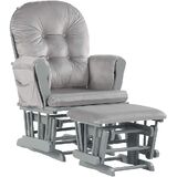 The perfect spot in the nursery for bonding with your baby. The glider and ottoman offer soft quiet gliding motion, an overstuffed back cushion with appointed button tufting.
